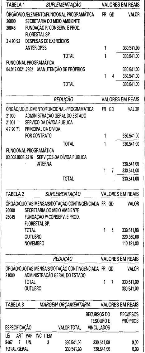 Orçamentária da Despesa do Estado, estabelecida pelo