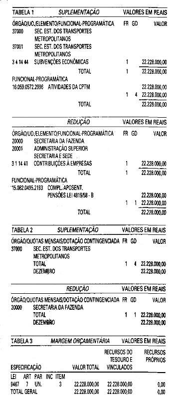 Orçamentária da Despesa do Estado, estabelecida pelo