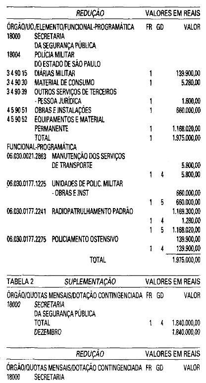 Dispõe sobre abertura de crédito suplementar ao Orçamento Fiscal na Secretaria da Segurança Pública, visando ao atendimento de despesas Correntes