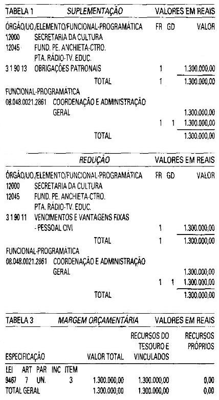 TV Educativa, visando ao atendimento de despesas com Pessoal e Encargos