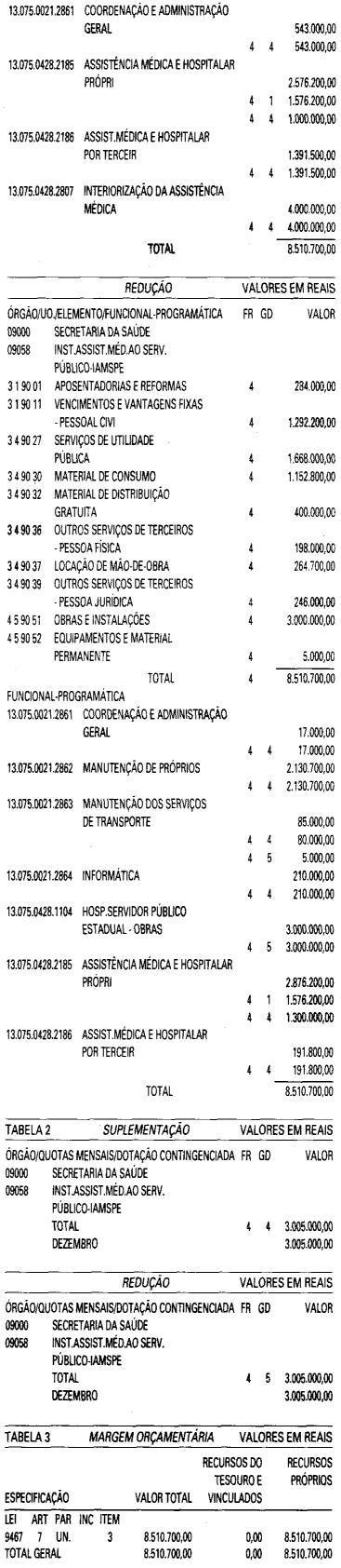 Orçamentária da Despesa do Estado, estabelecida pelo