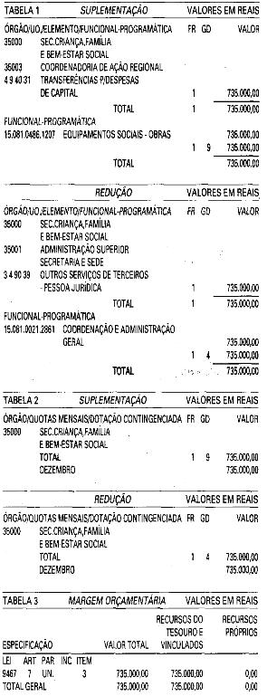 - Fica aberto um crédito de R$ 735.000,00 (Setecentos e