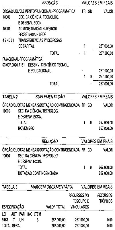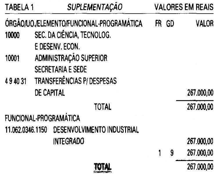 Orçamentária da Despesa do Estado, estabelecida pelo