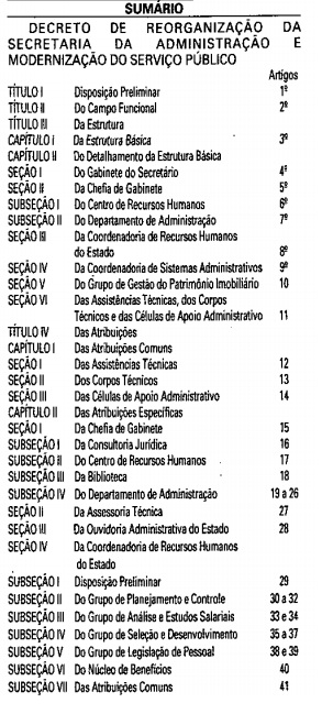 Artigo 1.º - A Secretaria da Administração e Modernização do Serviço Público fica reorganizada nos termos deste decreto.