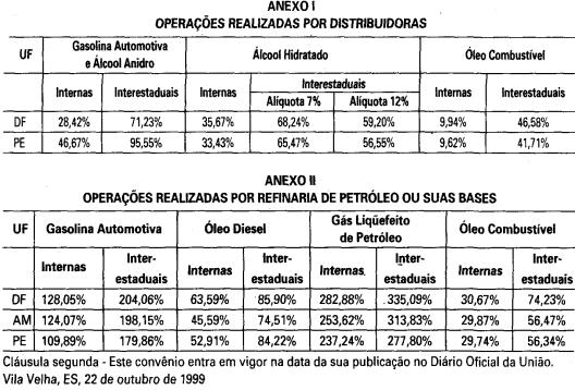 SINIEF-08/99 e 09/99, publicados no Diário Oficial da União de 28 de outubro de
