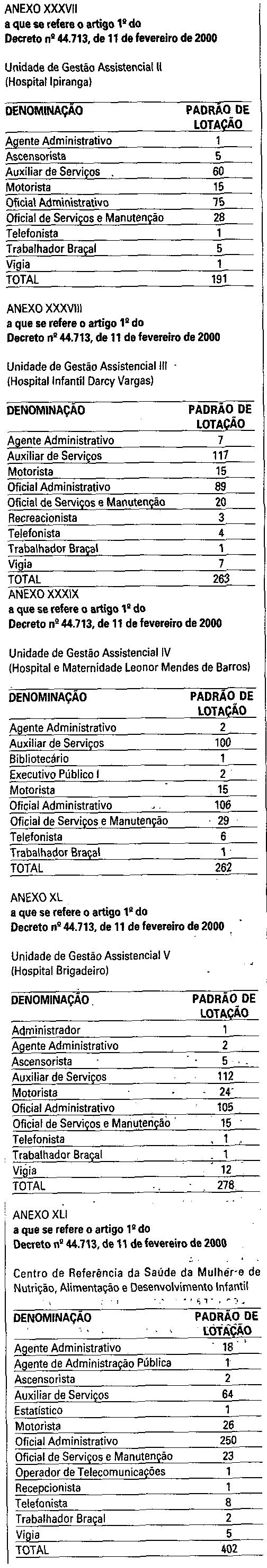 XXXIX - da Unidade de Gestão Assistencial IV (Hospital e Maternidade Leonor Mendes de Barros), no Anexo XXXIX;