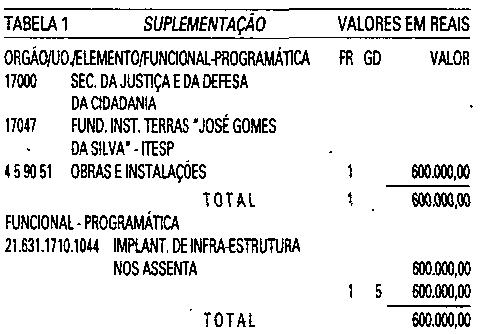 (Seiscentos mil reais), suplementar ao orçamento da
