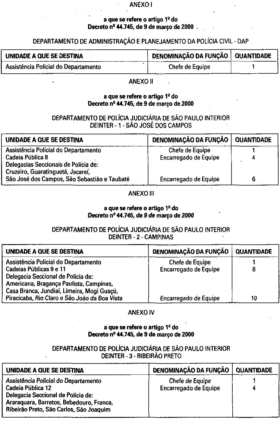 a) 1 (uma) de Chefe de Equipe, destinada á Assistência Policial do Departamento;
