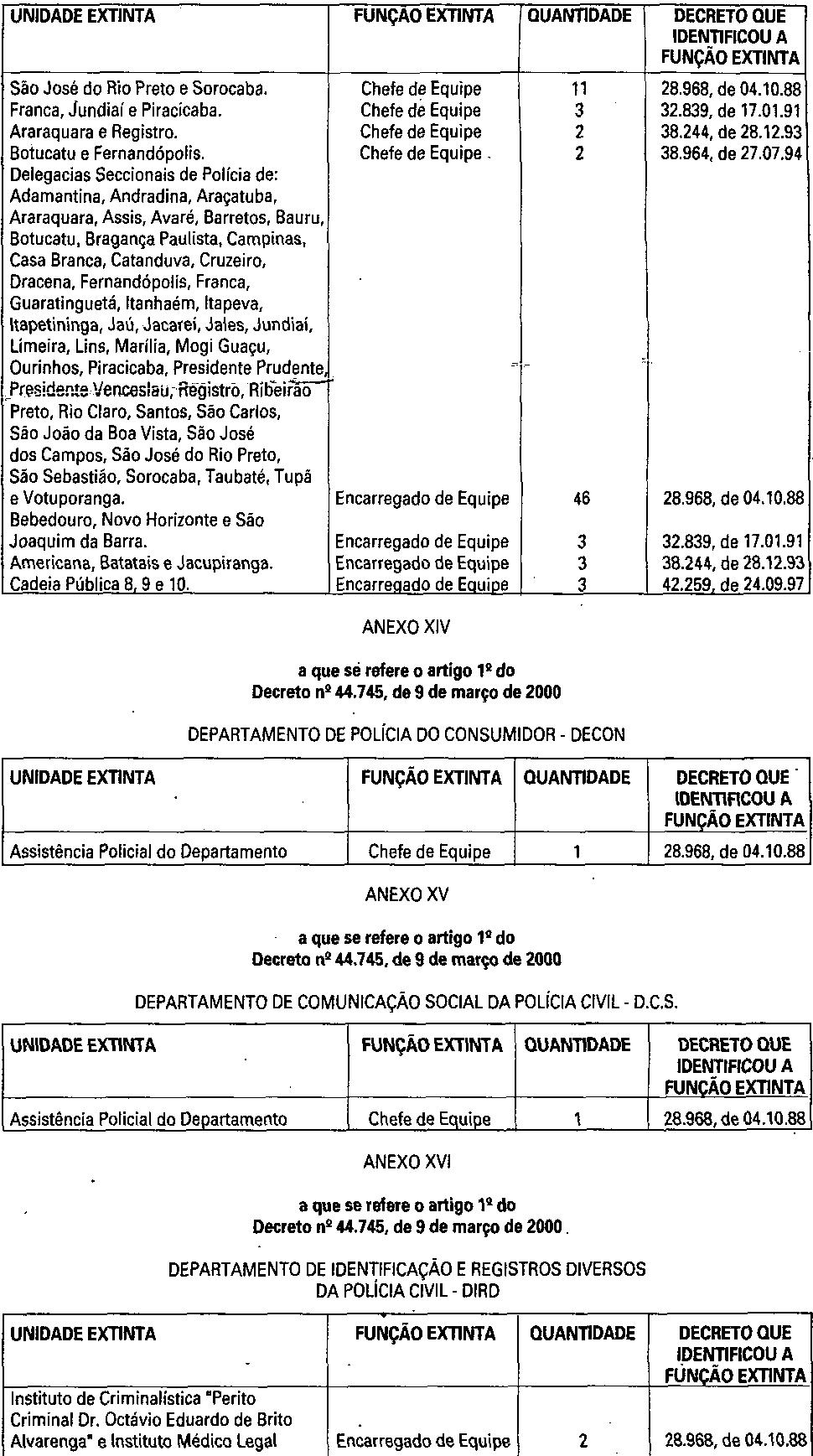 b) 4 (quatro) de Encarregado de Equipe destinadas à Divisão de Comunicações da Polícia Civil;