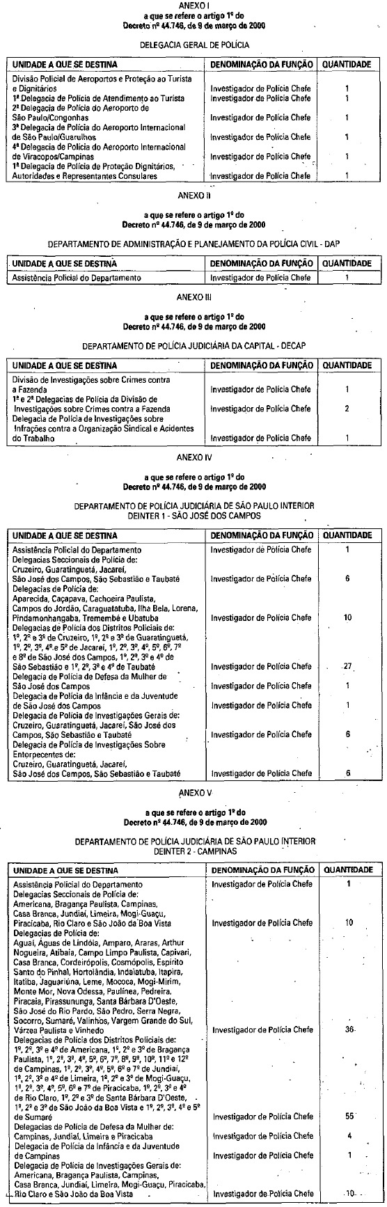 XI - no Departamento de Polícia Judiciária de São Paulo Interior - DEINTER - 2 Campinas, 128 (cento e vinte e oito) de Investigador de Polícia Chefe, destinadas: