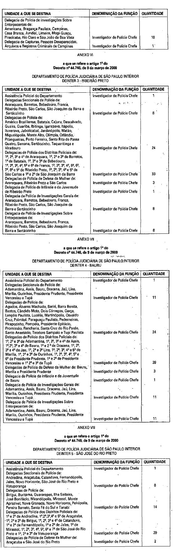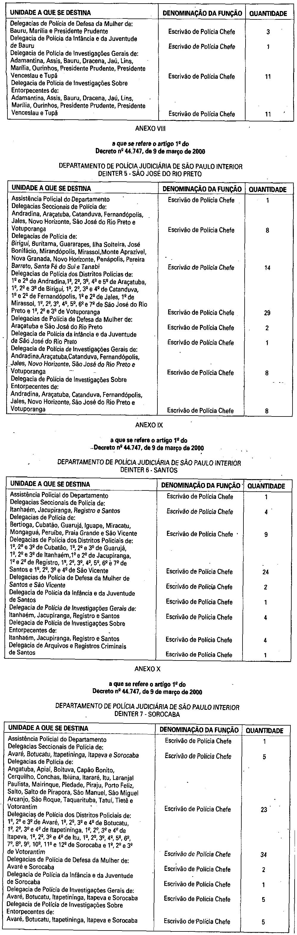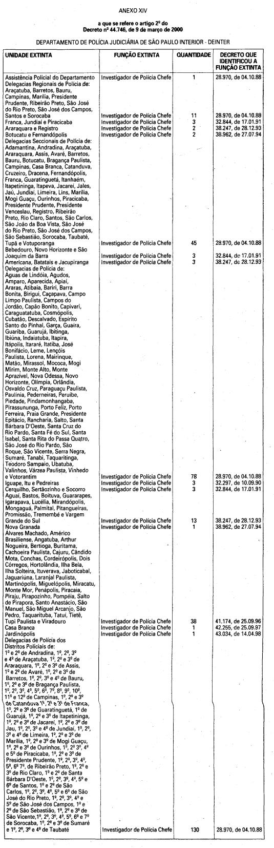 XIV - no Departamento de Polícia Judicíaria de São Paulo Interior - DEINTER - 5 - São José do Rio Preto, 71 (setenta e um) de Investigador de Polícia Chefe, destinadas: