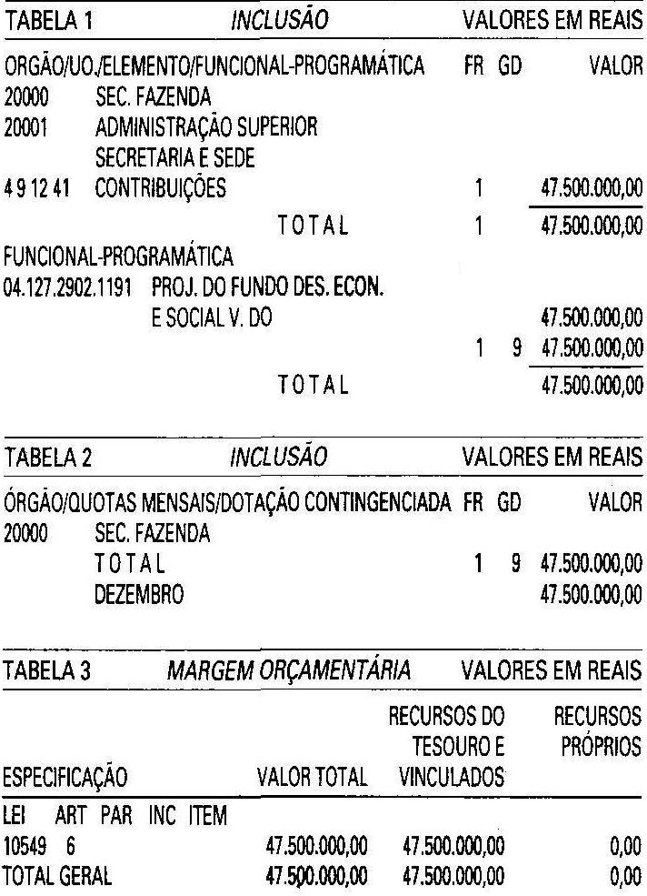 especial ao orçamento da Secretaria da Fazenda, observando-se as