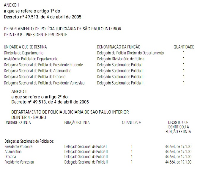 Artigo 2º - Ficam extintas as funções de direção, constantes do Anexo II, que faz parte integrante deste decreto, específicas da carreira de Delegado de Polícia, identificadas para fins de atribuição da gratificação “pro labore” com fundamento no artigo 4º da Lei Complementar nº 545, de 24 de junho de 1988, destinadas às unidades neles discriminadas.