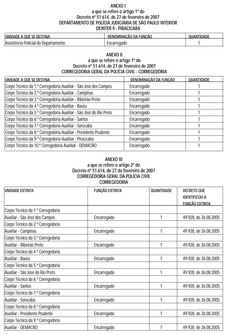“XXIII - no Departamento de Polícia Judiciária de São Paulo Interior - DEINTER 9 - Piracicaba, 7 (sete) de Encarregado, destinadas: