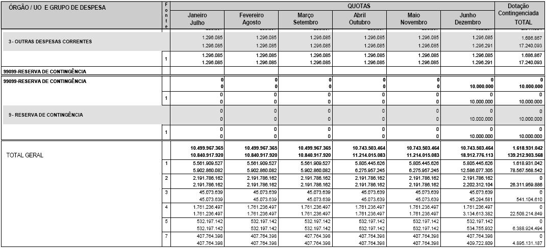 as receitas do Orçamento estabelecido pela Lei nº