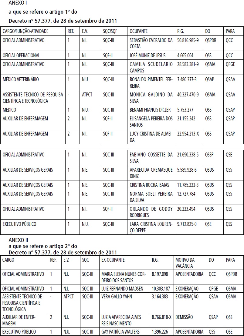 Ficam transferidos os cargos vagos constantes do Anexo II que faz parte