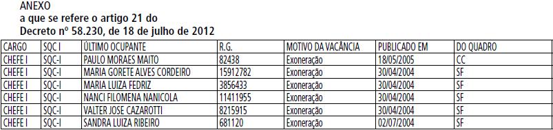 Decreto nº 57.736, de 13 de janeiro de 2012, observadas as