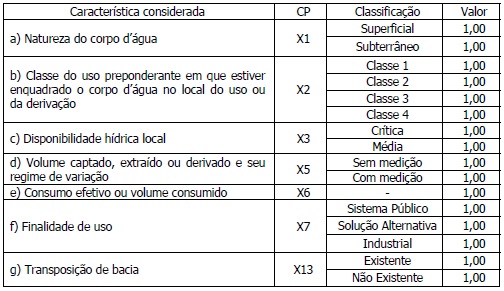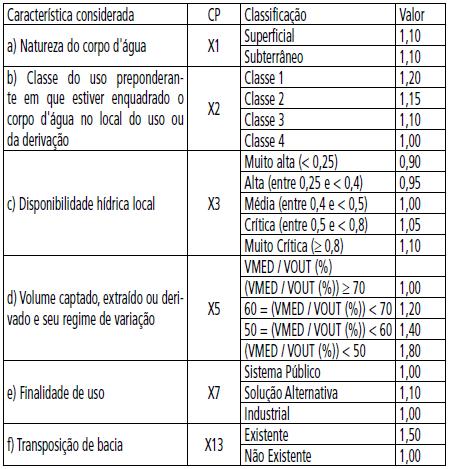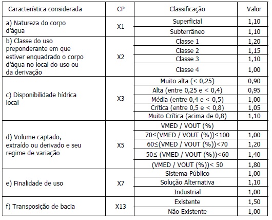 6.1. Coeficientes Ponderadores para o cálculo da cobrança