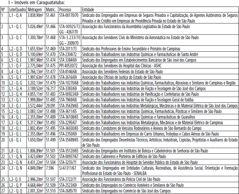 entidades de classe, dos imóveis que especifica nos