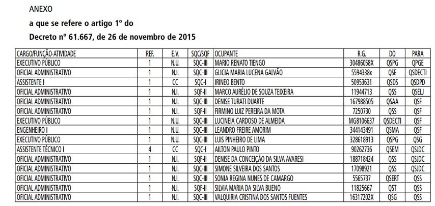 Artigo 2º - Ficam os Secretários de Estado e o Procurador Geral do Estado autorizados a procederem, mediante apostila, à retificação dos seguintes elementos informativos constantes do Anexo, a que se refere o artigo anterior: