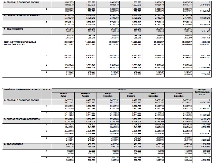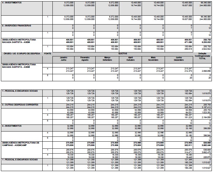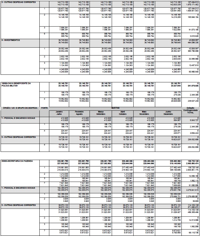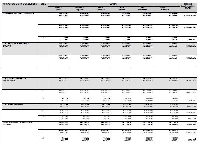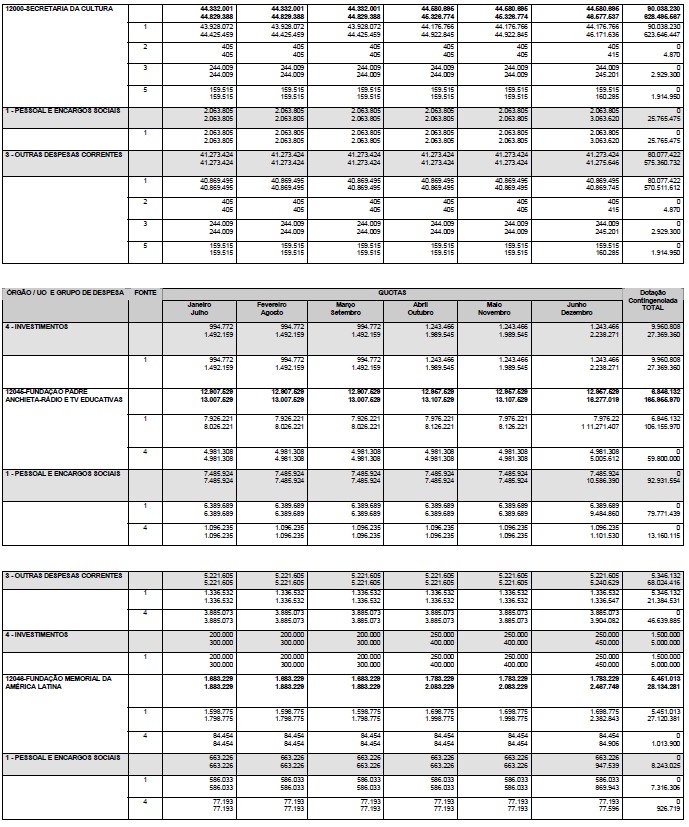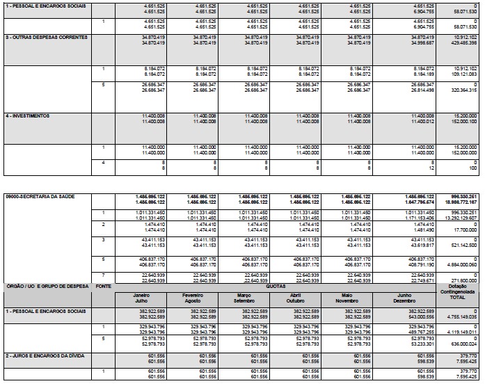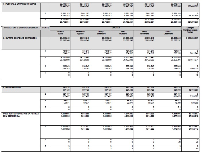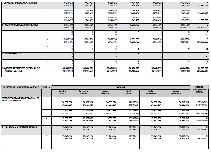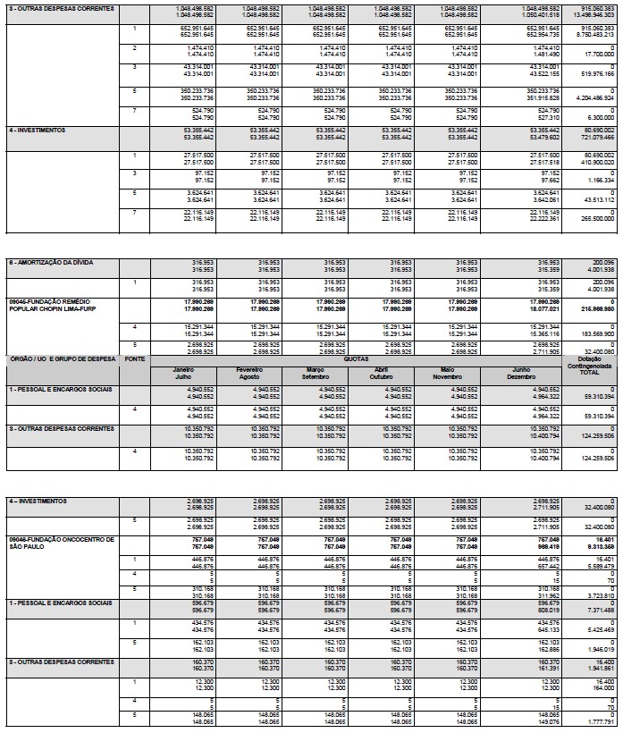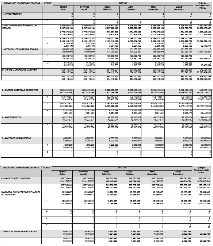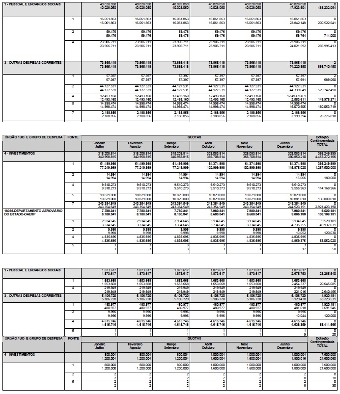 § 1º - A distribuição das dotações orçamentárias, por quotas, do Anexo, será automaticamente disponibilizada no SIAFEM/SP com o seguinte detalhamento: