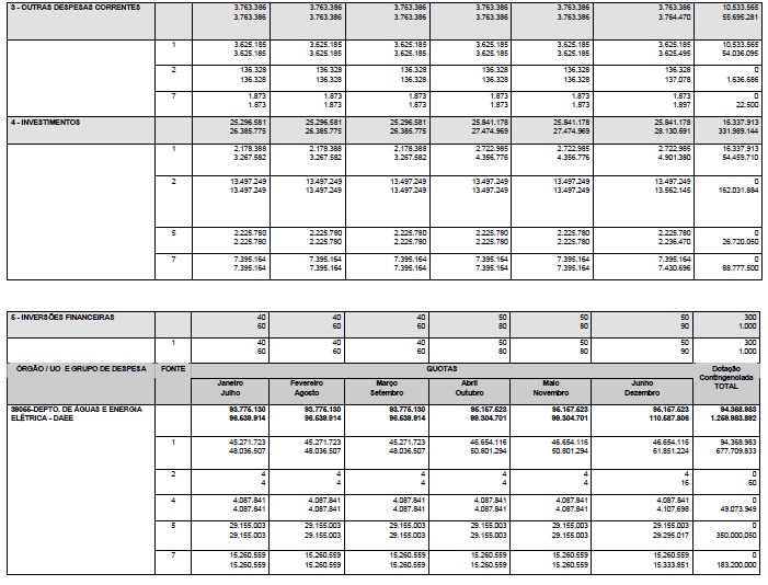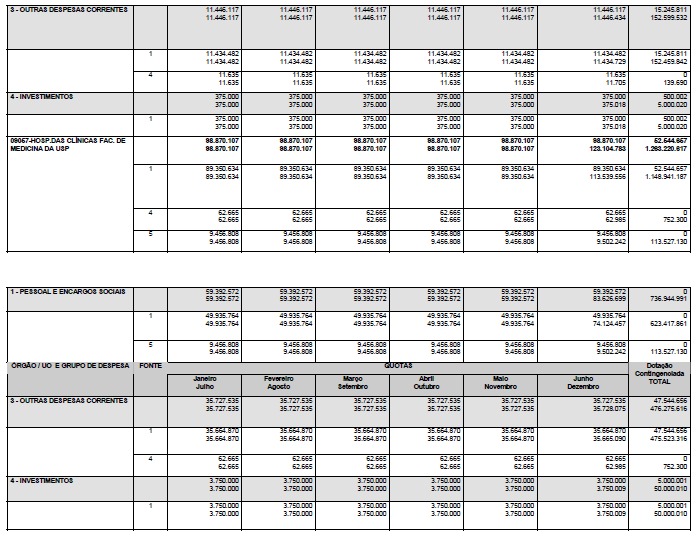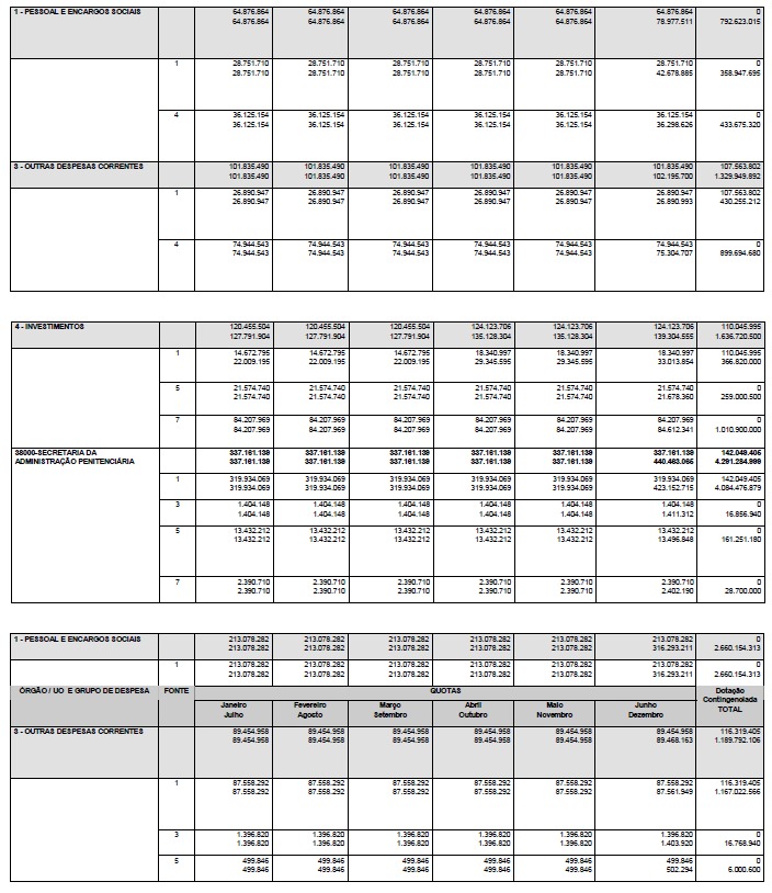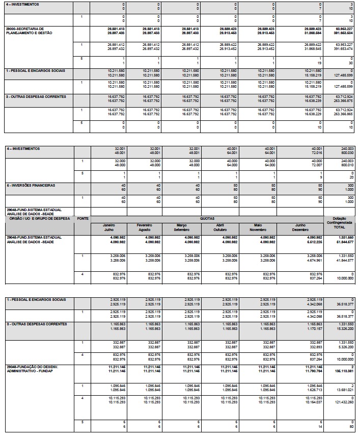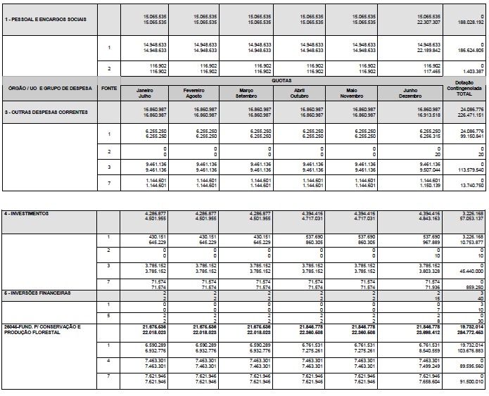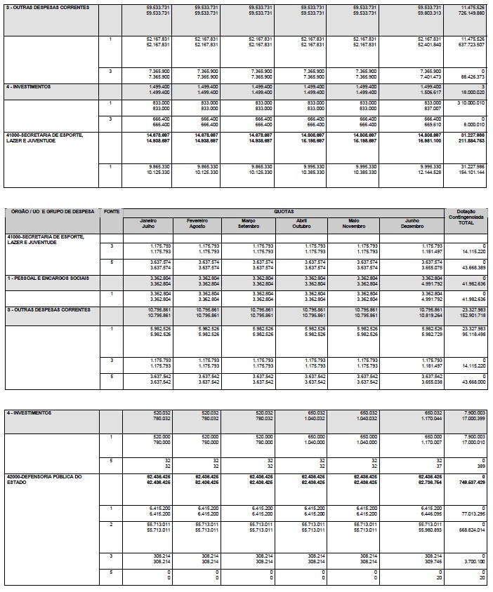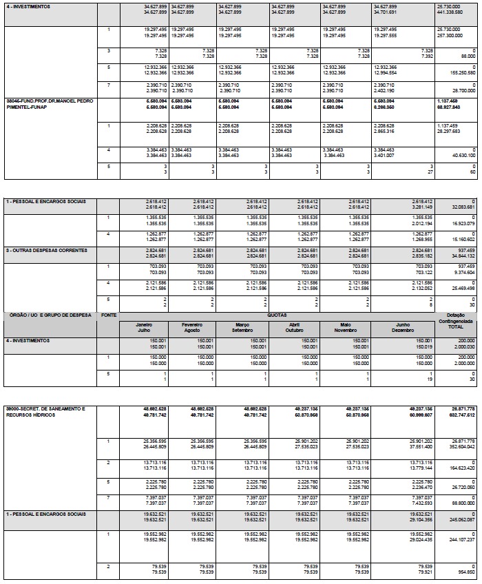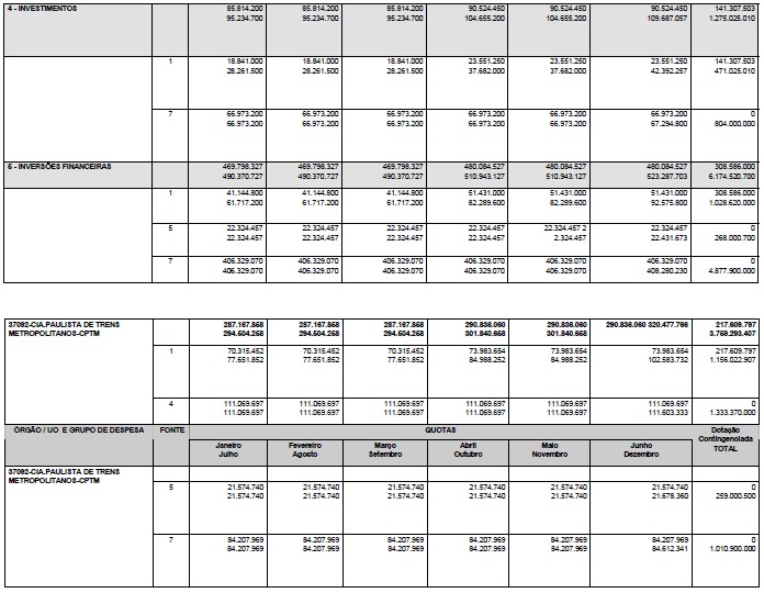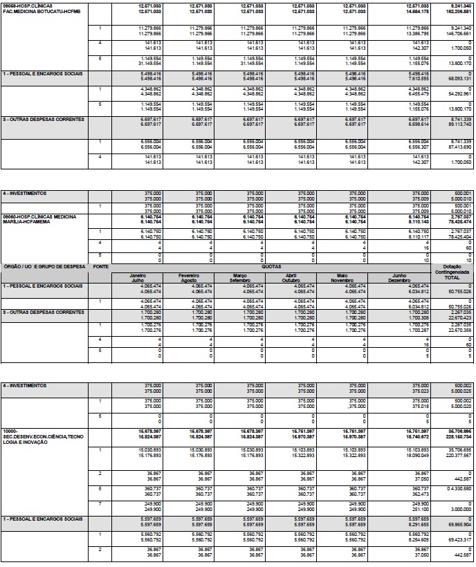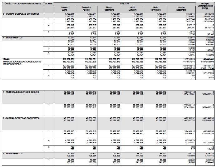 § 1º - A distribuição das dotações orçamentárias, por quotas, do Anexo, será automaticamente disponibilizada no SIAFEM/SP com o seguinte detalhamento: