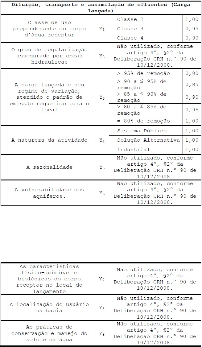 6.3. Valores dos Coeficientes Ponderadores para diluição, transporte e assimilação de efluentes.