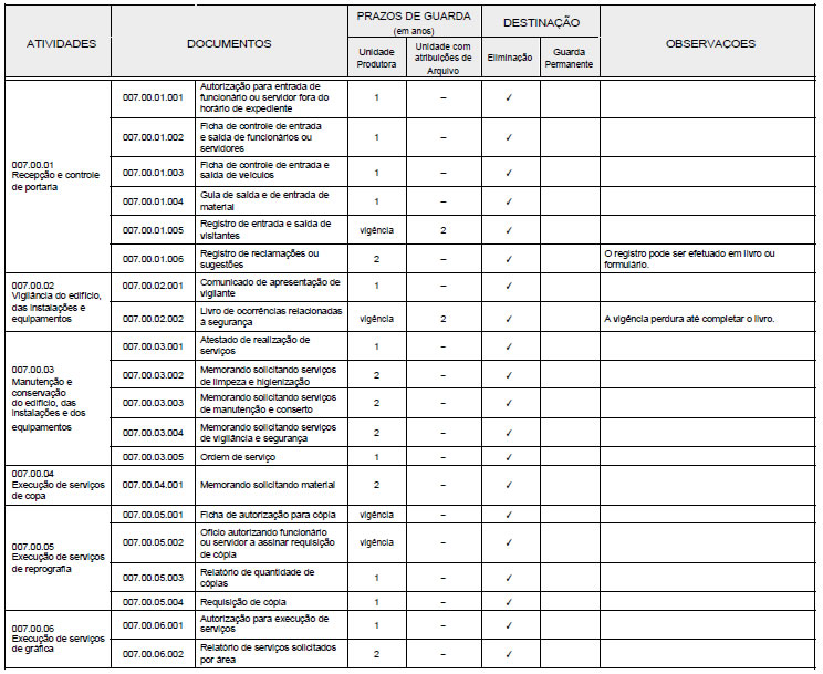 Esta função compreende os serviços de recepção e controle de portaria, manutenção e vigilância de edifícios e equipamentos, assim como os serviços de limpeza, de copa, de reprografia, de gráfica e de telecomunicações.