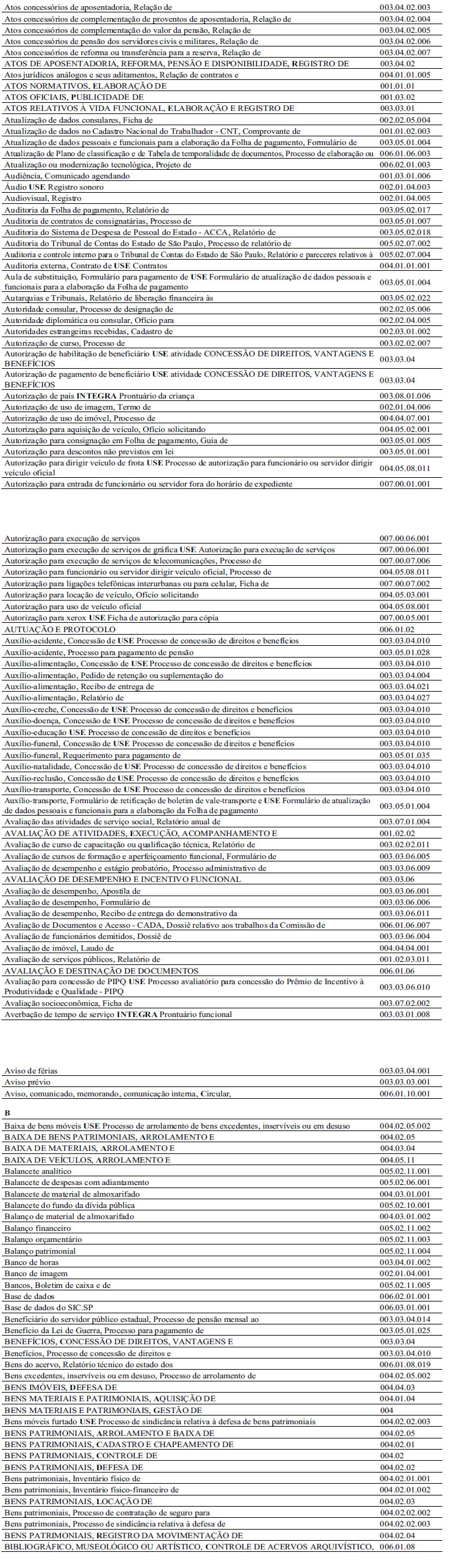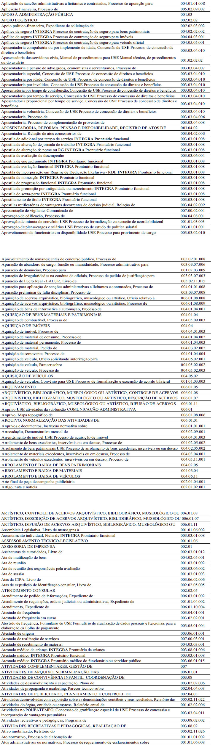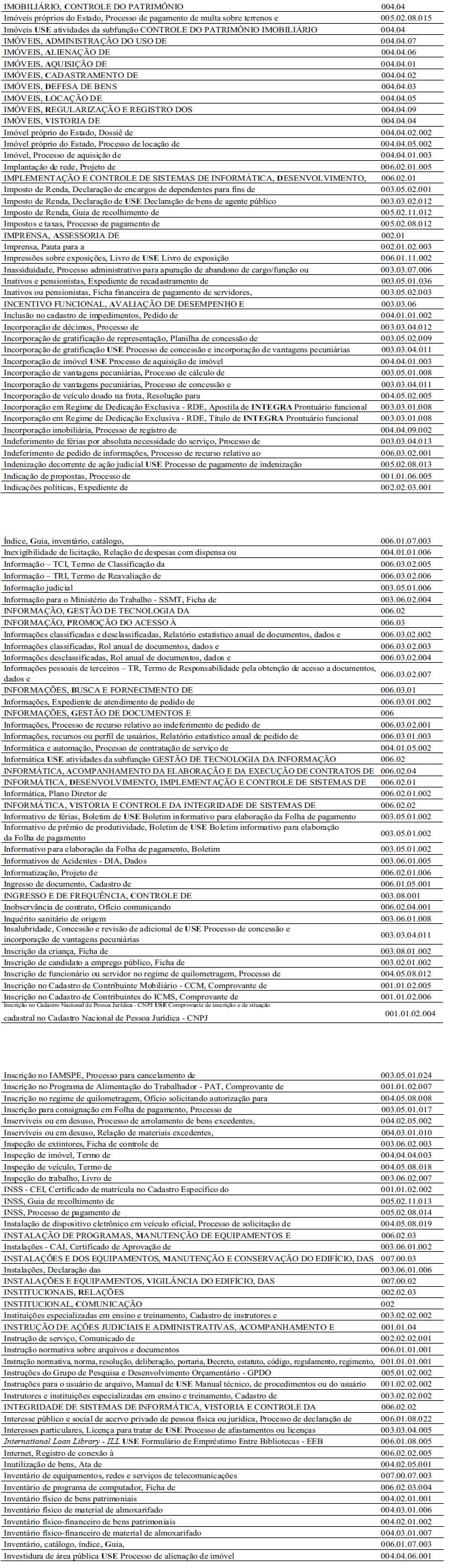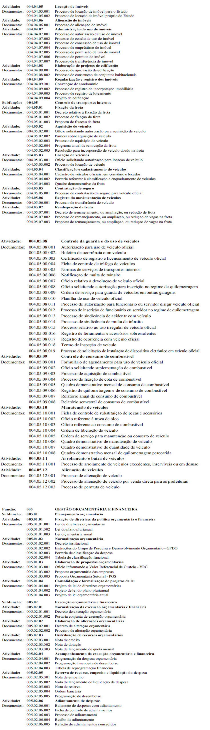 006.01 Comunicação administrativa (SUBFUNÇÃO) Esta subfunção refere-se às atividades relativas ao recebimento, registro, classificação, arquivamento, avaliação e descrição de documentos, assim como ao controle dos acervos arquivístico, bibliográfico, museológico ou artístico.