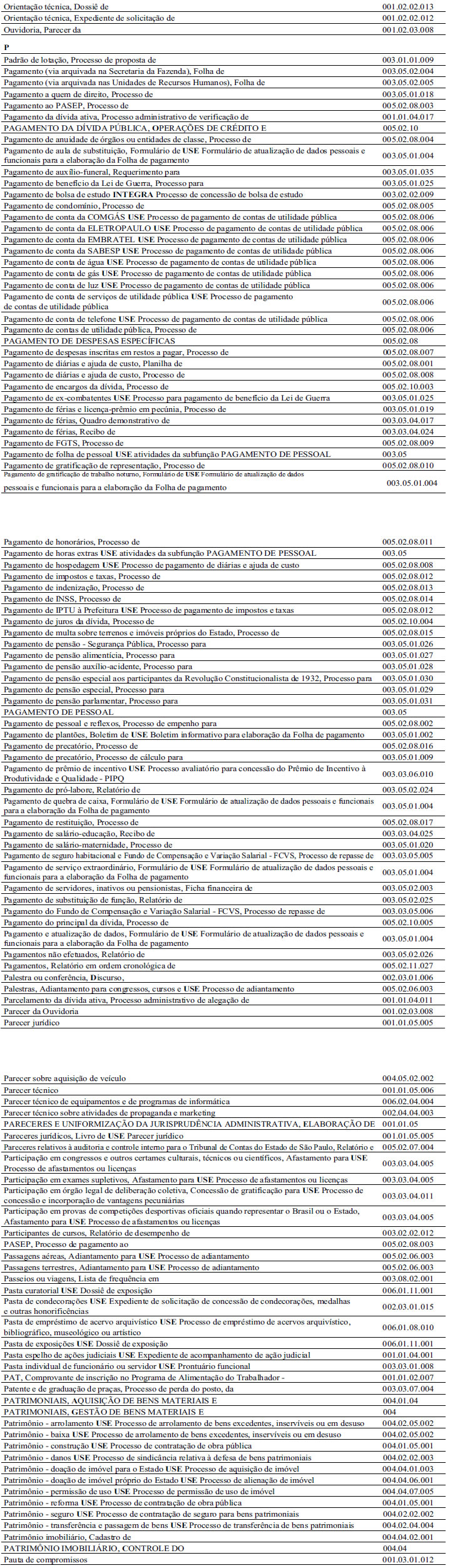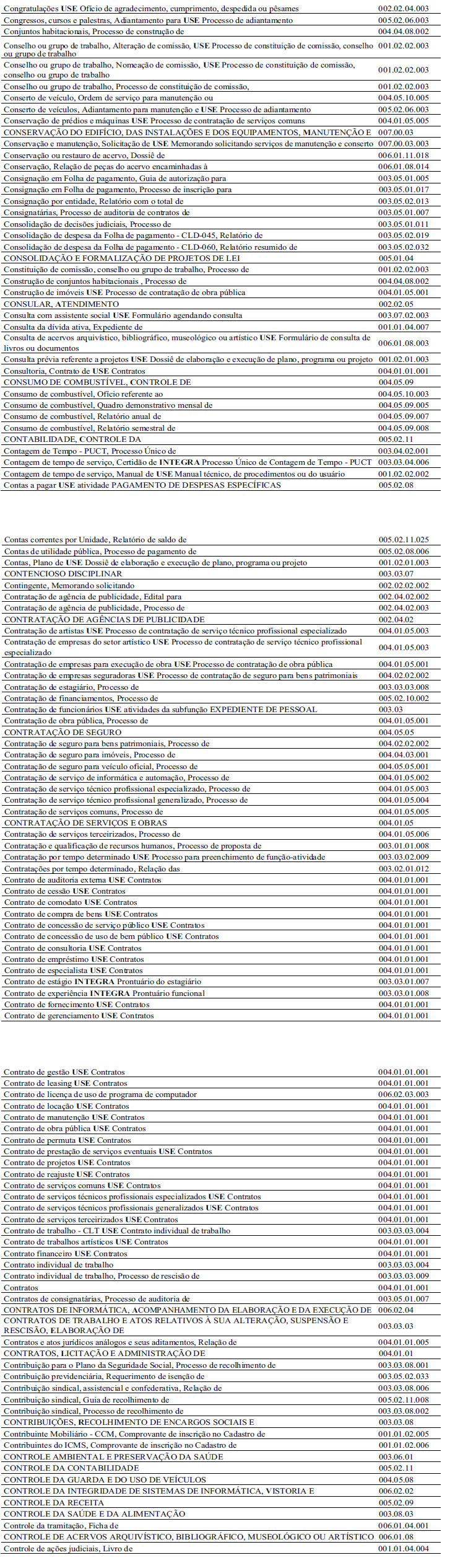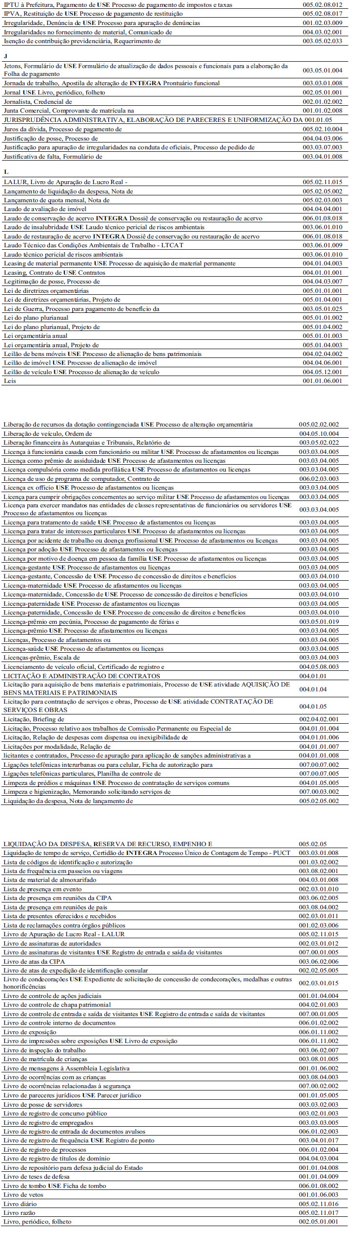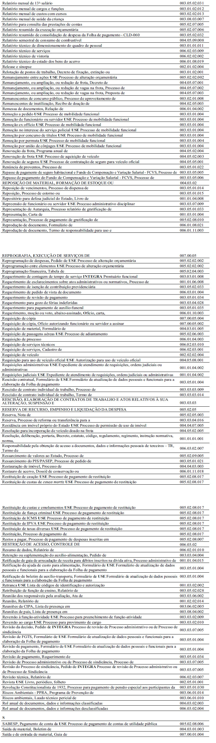 006.01 Comunicação administrativa (SUBFUNÇÃO) Esta subfunção refere-se às atividades relativas ao recebimento, registro, classificação, arquivamento, avaliação e descrição de documentos, assim como ao controle dos acervos arquivístico, bibliográfico, museológico ou artístico.