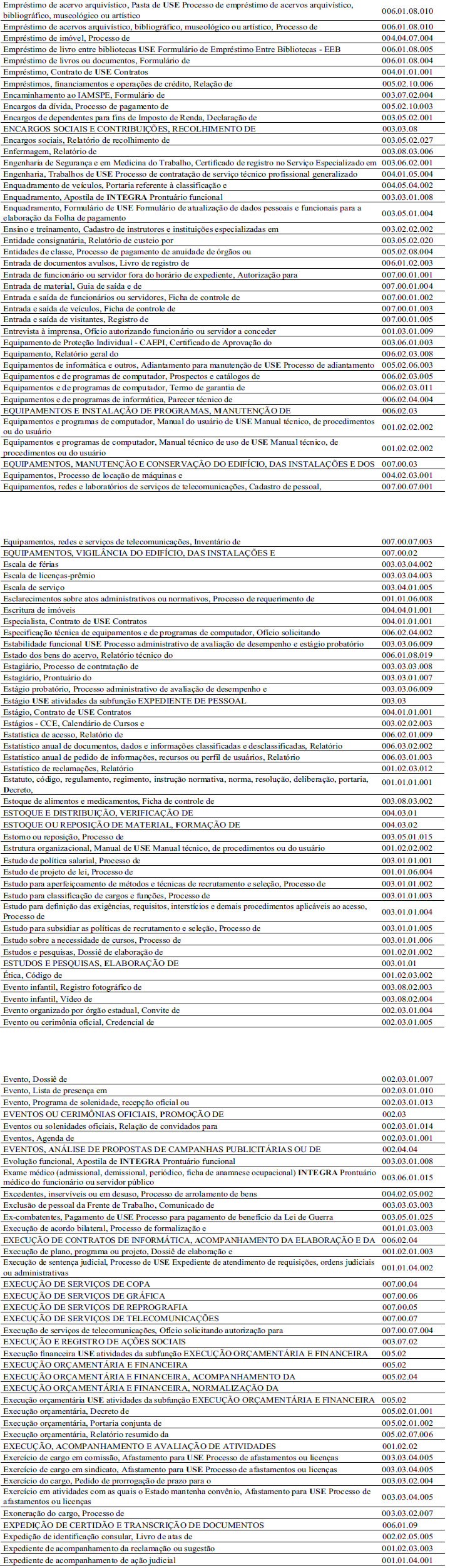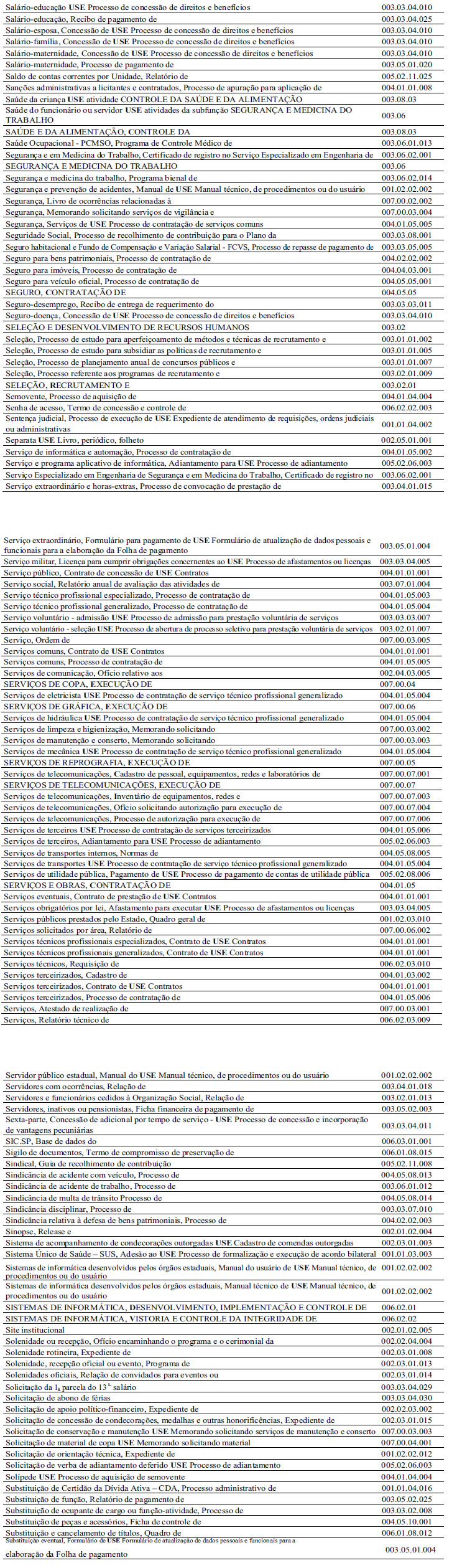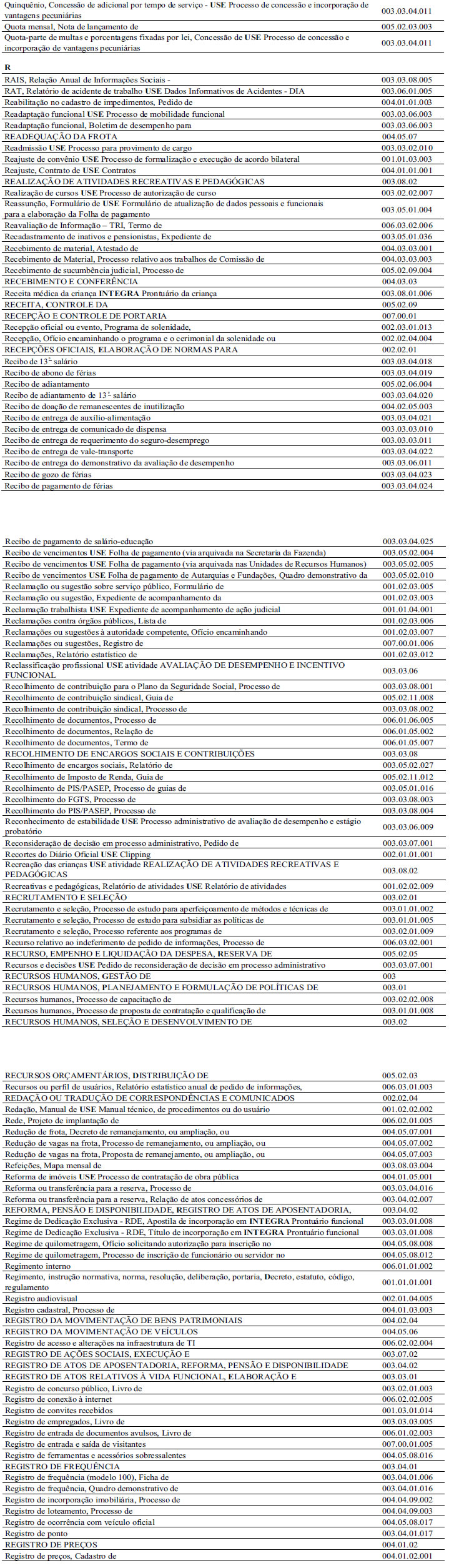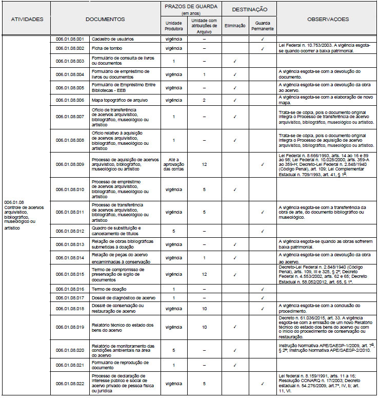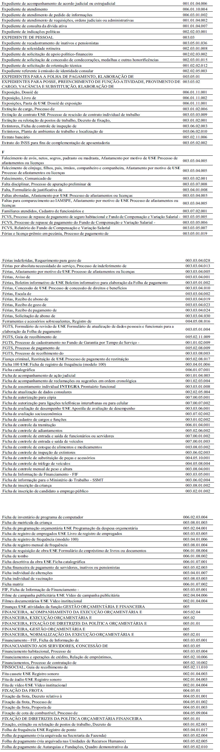 006.01 Comunicação administrativa (SUBFUNÇÃO) Esta subfunção refere-se às atividades relativas ao recebimento, registro, classificação, arquivamento, avaliação e descrição de documentos, assim como ao controle dos acervos arquivístico, bibliográfico, museológico ou artístico.