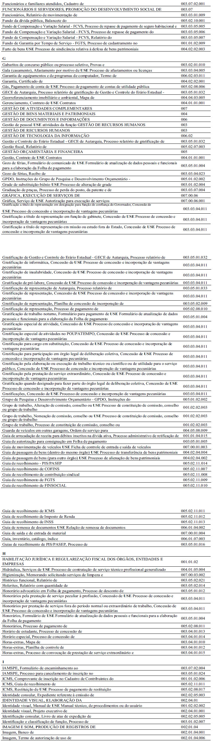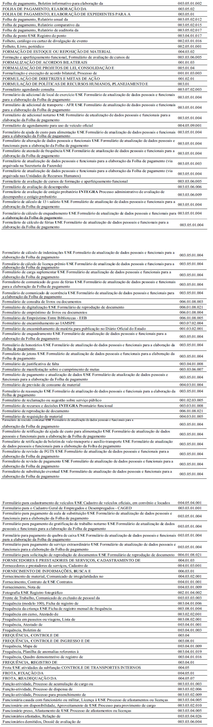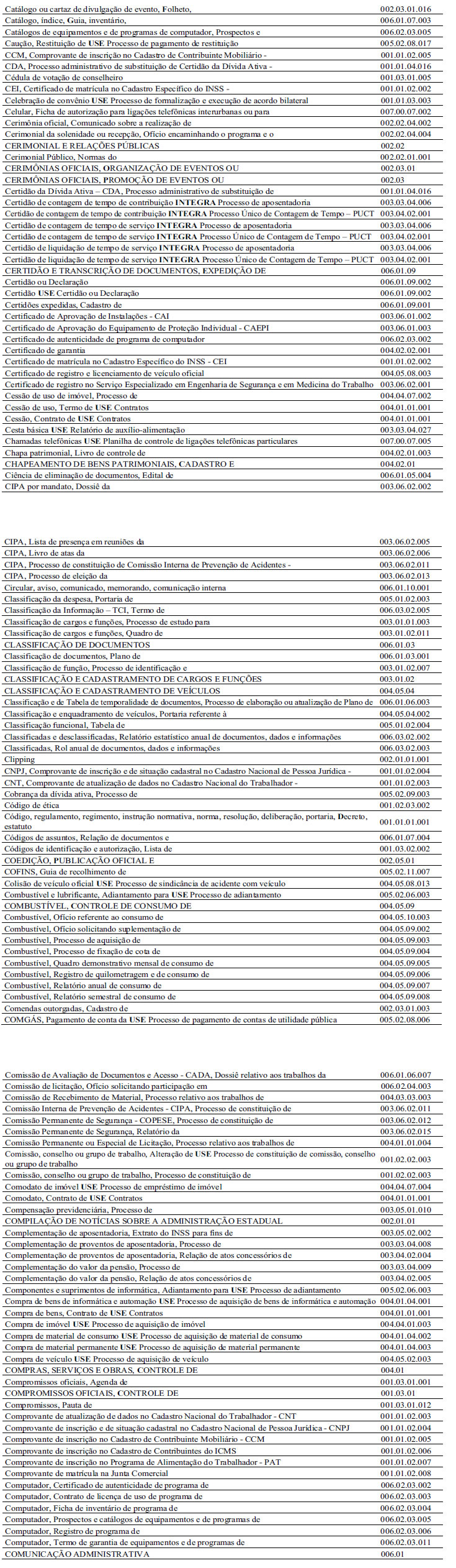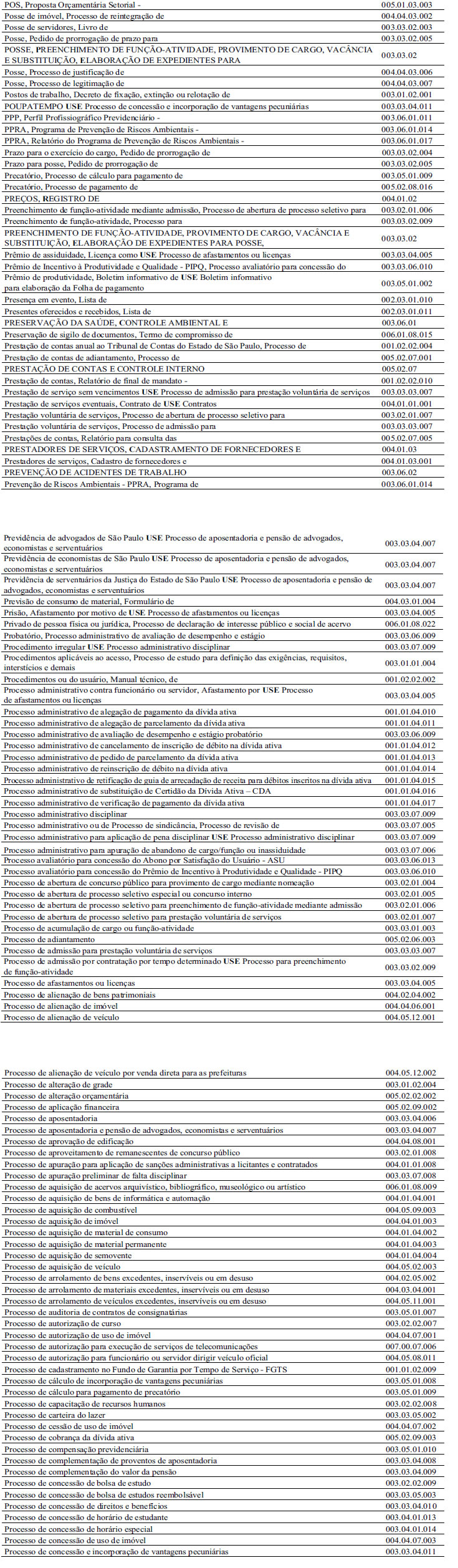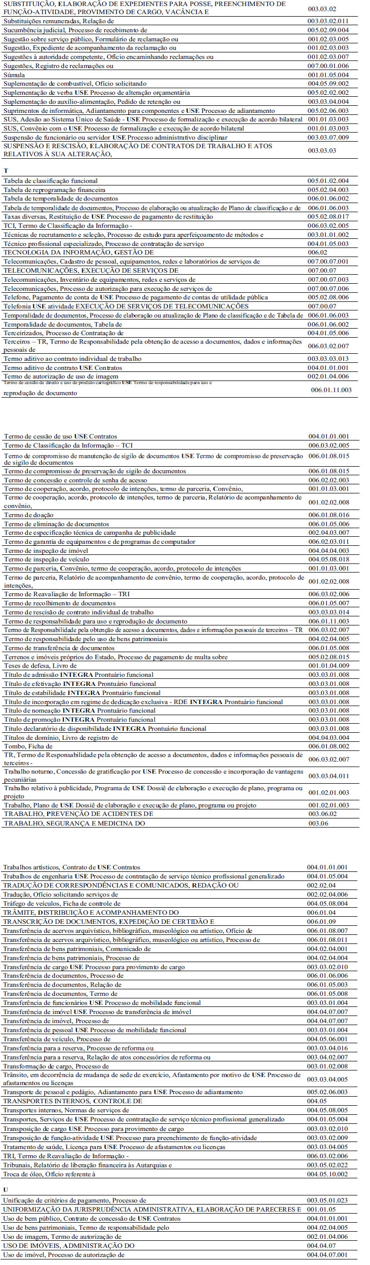 006.01 Comunicação administrativa (SUBFUNÇÃO) Esta subfunção refere-se às atividades relativas ao recebimento, registro, classificação, arquivamento, avaliação e descrição de documentos, assim como ao controle dos acervos arquivístico, bibliográfico, museológico ou artístico.