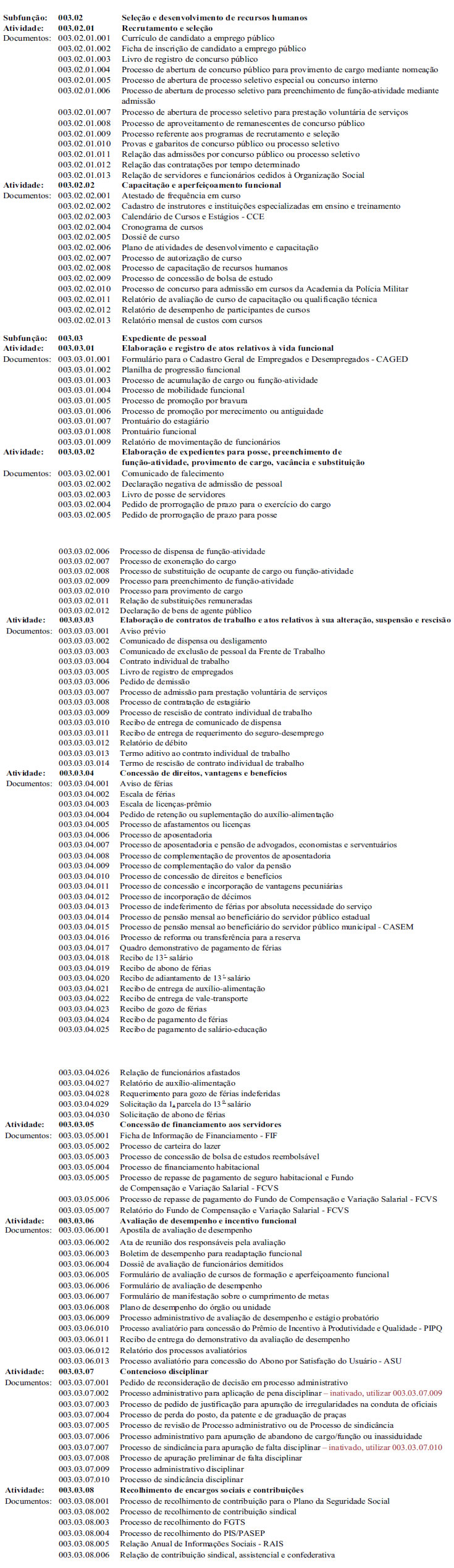 003.02 Seleção e desenvolvimento de recursos humanos (SUBFUNÇÃO)
