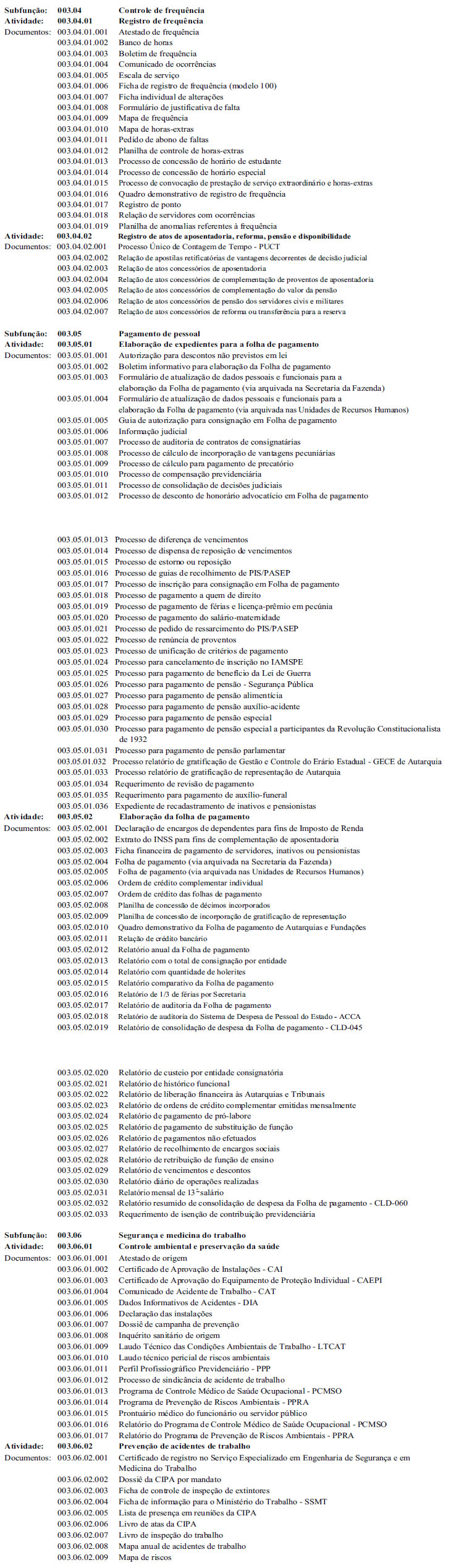 003.03 Expediente de pessoal (SUBFUNÇÃO)