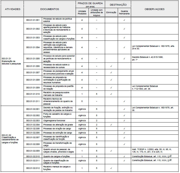 Esta subfunção refere-se à elaboração de manuais de procedimentos, realização de estudos e pesquisas relativos aos padrões de lotação, de adequação dos quadros de pessoal, de planos de salários e programas de regimes de trabalho e da classificação e cadastro de cargos e funções.