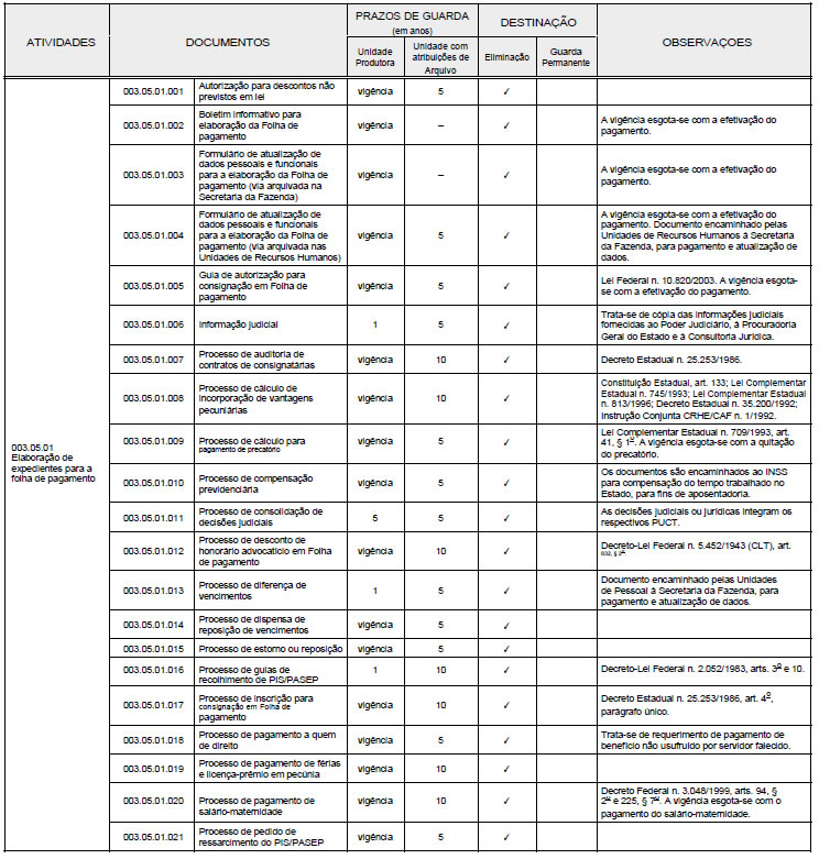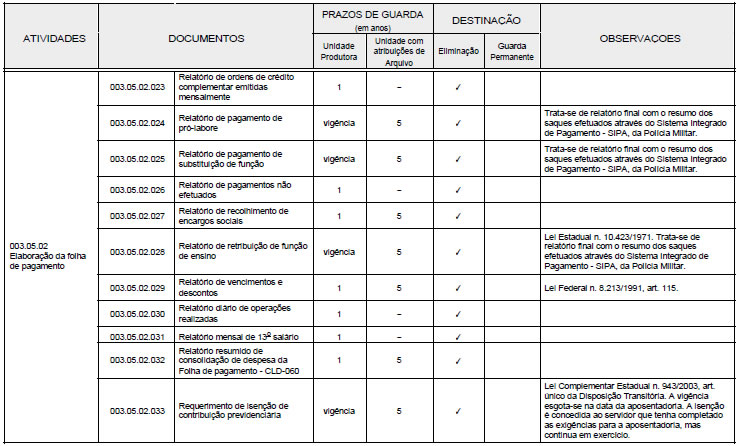 003.05 Pagamento de pessoal (SUBFUNÇÃO)