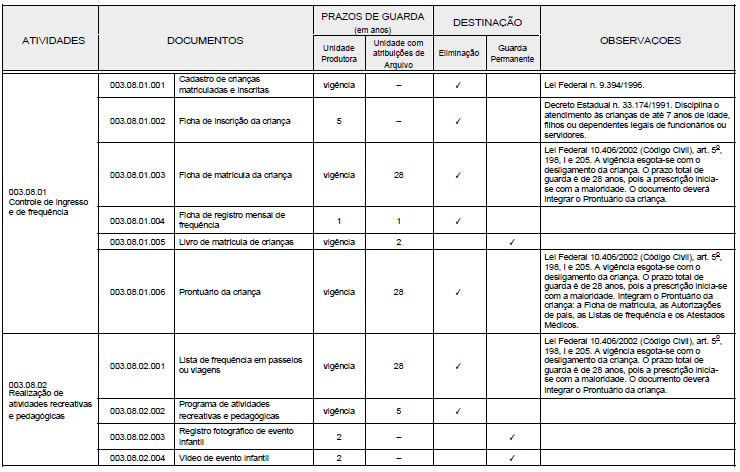 Esta subfunção refere-se às atividades de atendimento e assistência às crianças, filhos e dependentes de funcionários ou servidores, nos Centros de Convivência Infantil.