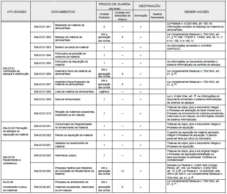 004.03 Controle de almoxarifado (SUBFUNÇÃO)