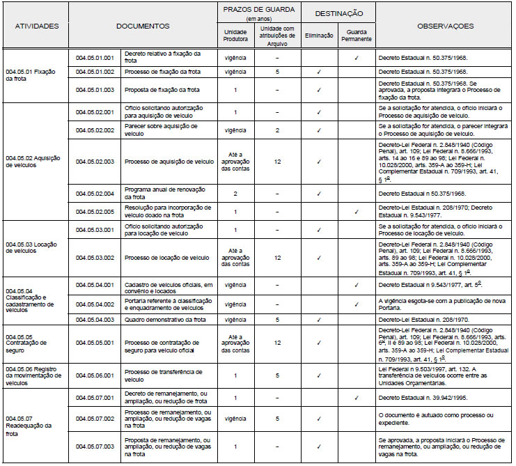 004.05 Controle de transportes internos (SUBFUNÇÃO)