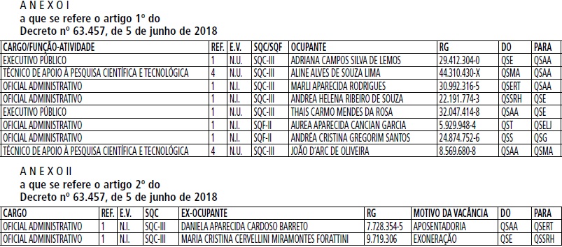 Artigo 1º - Ficam transferidos os cargos providos e as funções-atividades preenchidas constantes do Anexo I que faz parte integrante deste decreto.