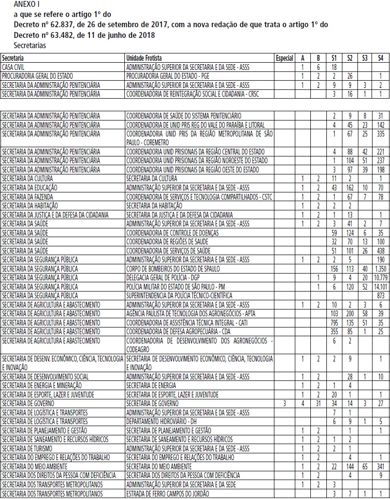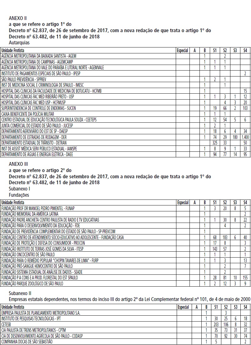 Artigo 1º - Os Anexos I a III a que se referem os artigos 1º e 2º do Decreto nº 62.837, de 26 de setembro de 2017, passam a vigorar com a redação prevista em anexo ao presente decreto.