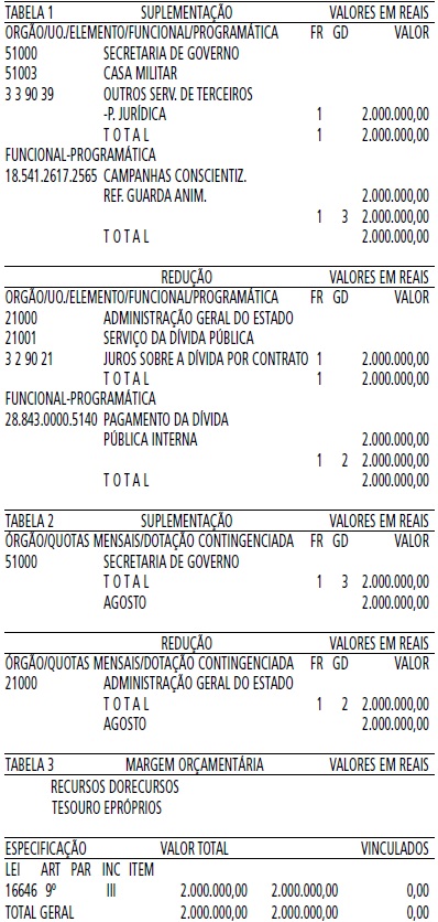 Artigo 3º - Fica alterada a Programação Orçamentária da Despesa do Estado, estabelecida pelo Anexo, de que trata o artigo 7°, do Decreto n° 63.152, de 15 de janeiro de 2018, de conformidade com a Tabela 2, anexa.