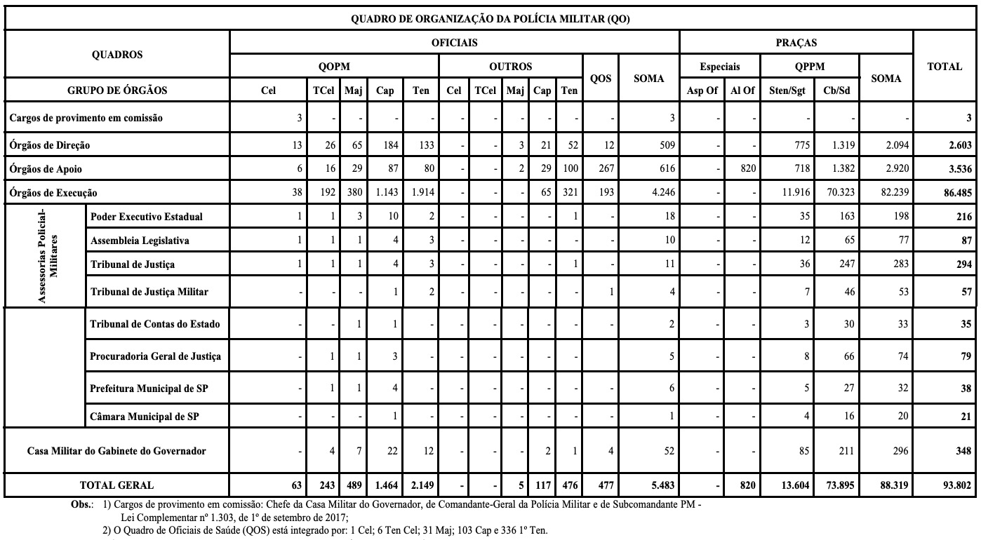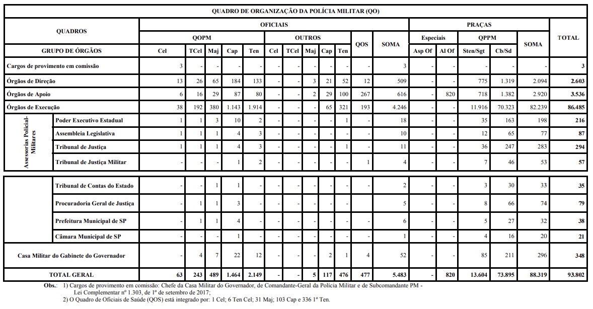 Artigo 1º - A Polícia Militar do Estado de São Paulo tem a seguinte estrutura básica: