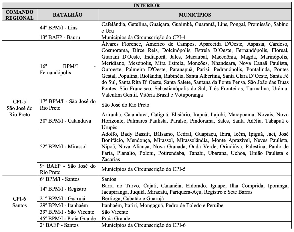 g) Comando de Policiamento do Interior-5 (CPI-5), sediado em São José do Rio Preto: Região Administrativa de São José do Rio Preto;