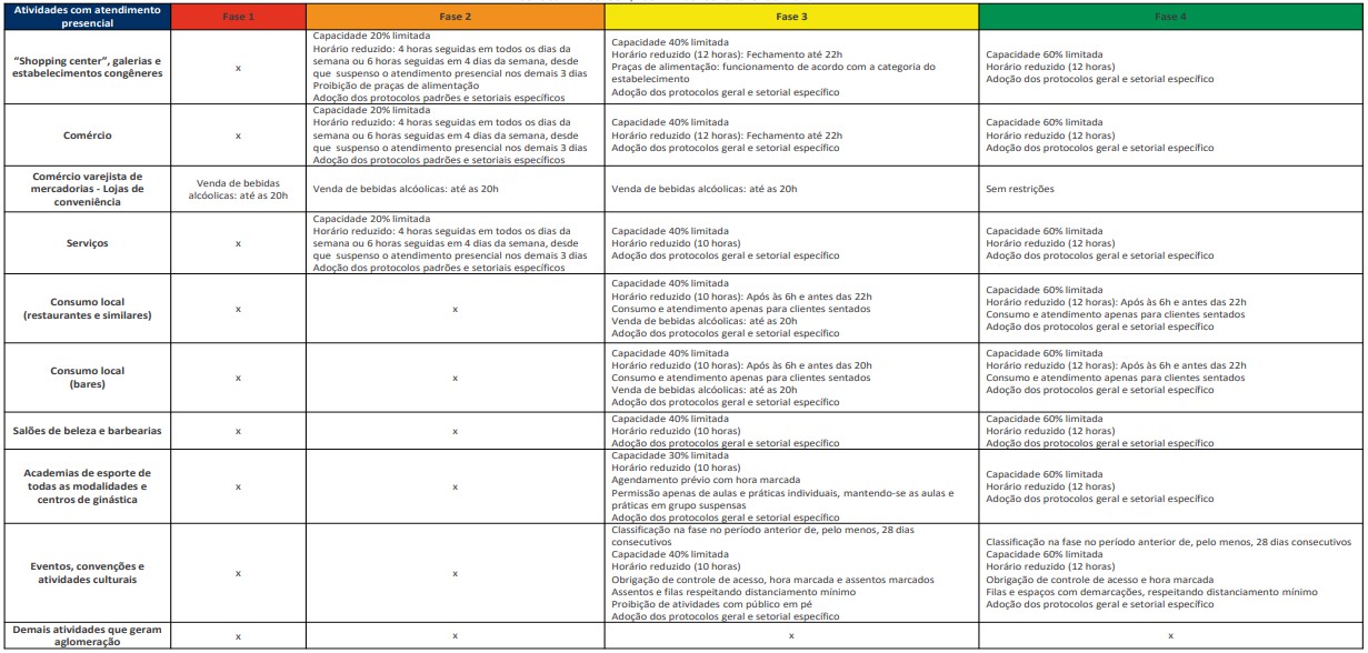 Este Centro tem recebido pleitos de diversos setores, dos quais se destacam shopping centers e comércio, arguindo que o horário de atendimento presencial de tais atividades possa ser estendido para o limite máximo de até 12 horas, sob o argumento de que esta medida permitiria uma melhor distribuição do público atendido, com potencial redução do risco de aglomerações, em especial neste período festivo. Assim, este Centro entende possível atender tal pleito, mantendo-se a limitação quanto à capacidade dos estabelecimentos em 40% e o horário máximo de fechamento às 22h.