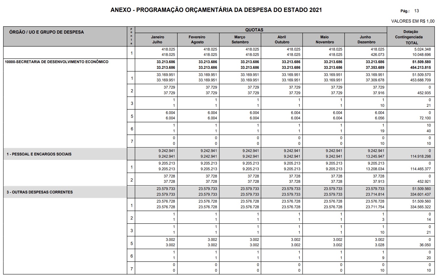 Considerando os ordenamentos estabelecidos na Constituição do Estado; as disposições da legislação orçamentária e financeira vigentes; as normas gerais de Direito Financeiro contidas na Lei federal nº 4.320, de 17 de março de 1964; as normas de finanças públicas fixadas na Lei Complementar federal nº 101, de 4 de maio de 2000, na Lei n° 17.286, de 20 de agosto de 2020, que dispõe sobre as Diretrizes Orçamentárias para o exercício de 2021, e na Lei nº 17.309, de 29 de dezembro de 2020, que orça a Receita e fixa a Despesa do Estado para o exercício de 2021;