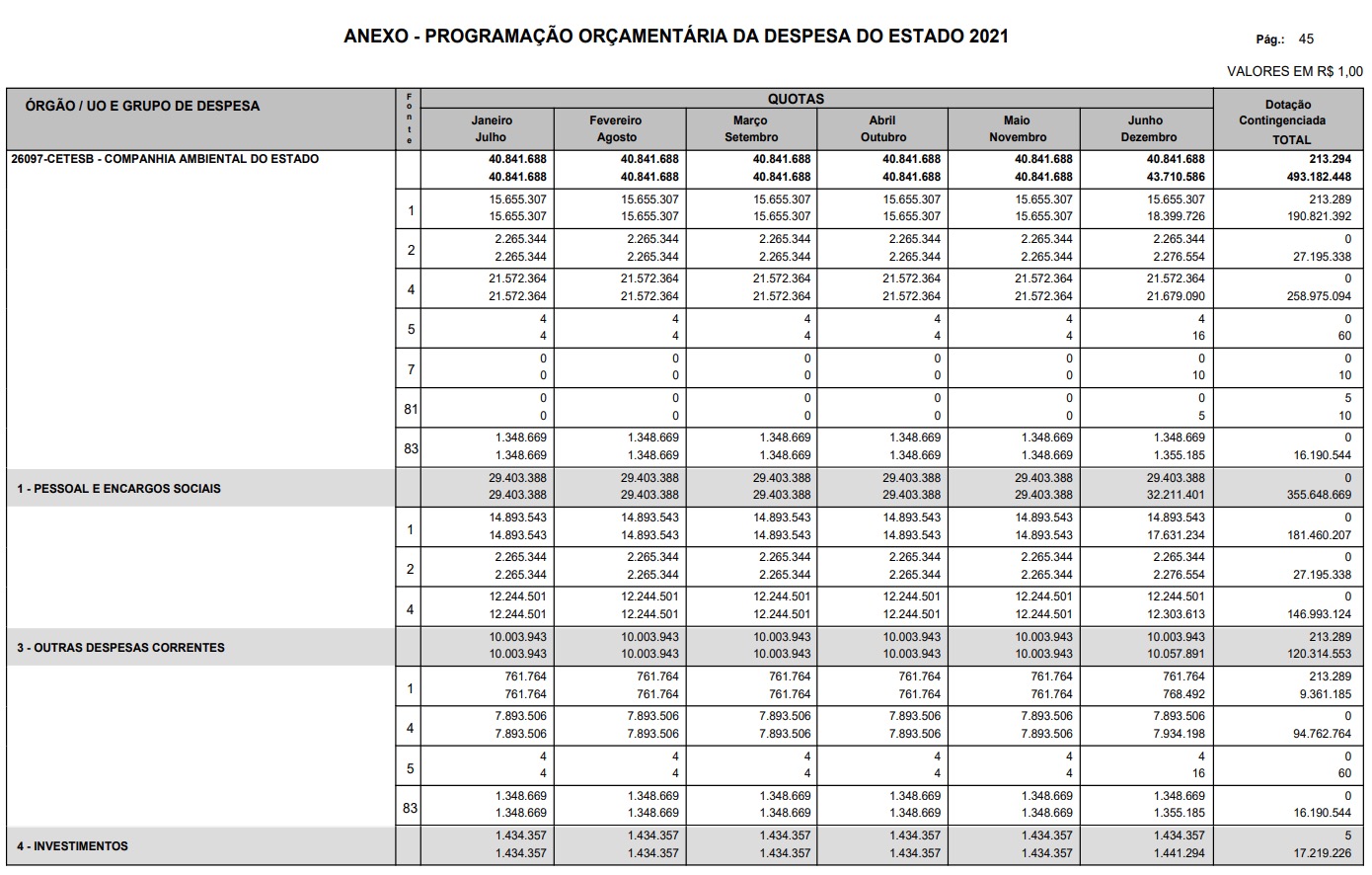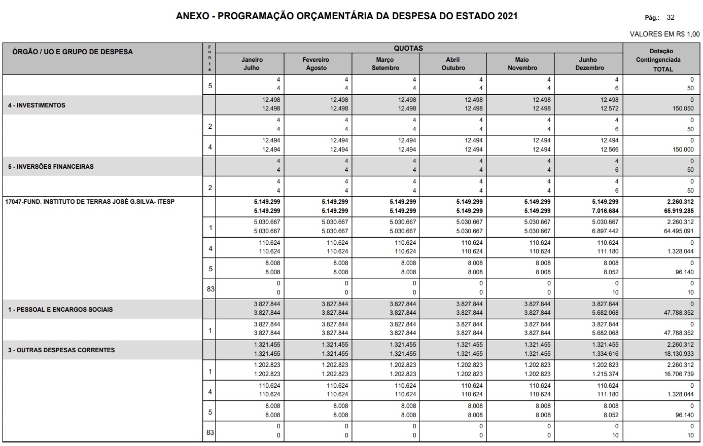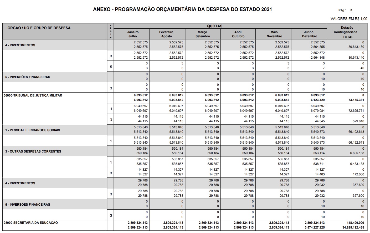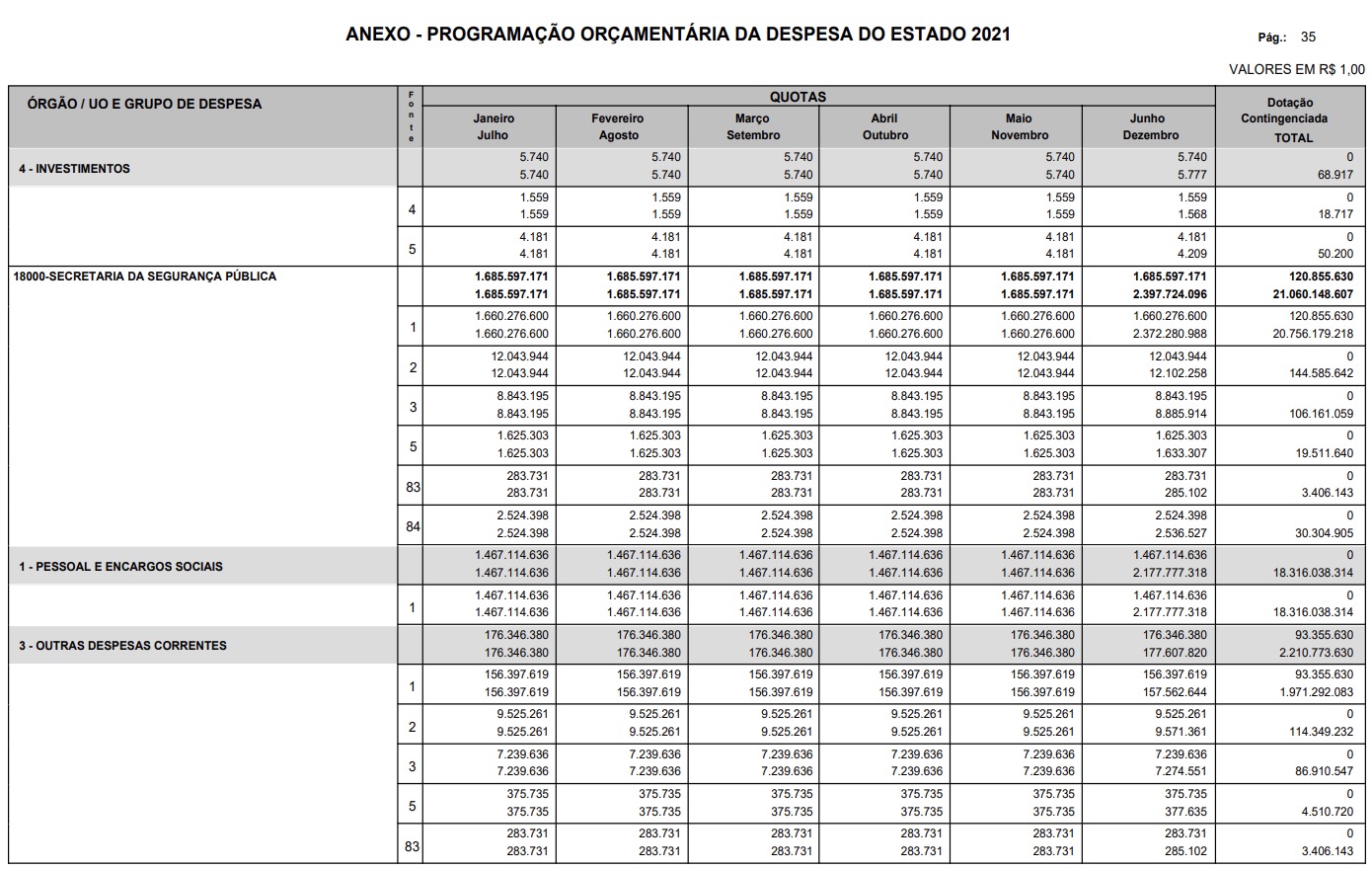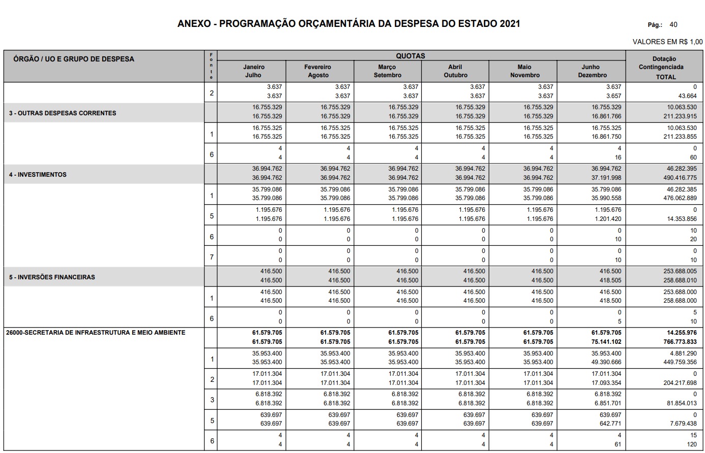 Considerando o imperativo legal de assegurar na execução orçamentária o princípio do equilíbrio entre despesas e receitas, estabelecido pela Lei nº 17.309 de 29 de dezembro de 2020, com a adoção de procedimentos que ajustem a realização do gasto ao comportamento efetivo da arrecadação, a fim de resguardar a estabilidade financeira do Tesouro do Estado;