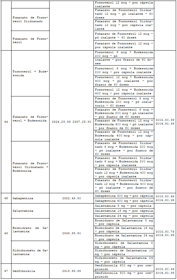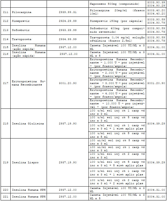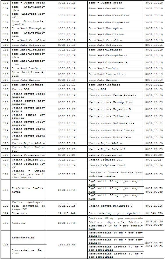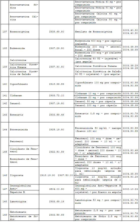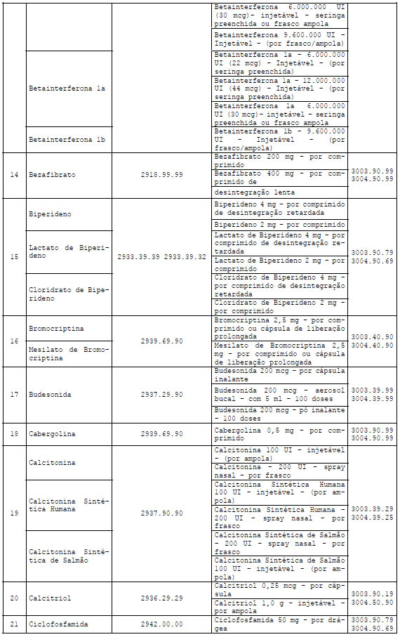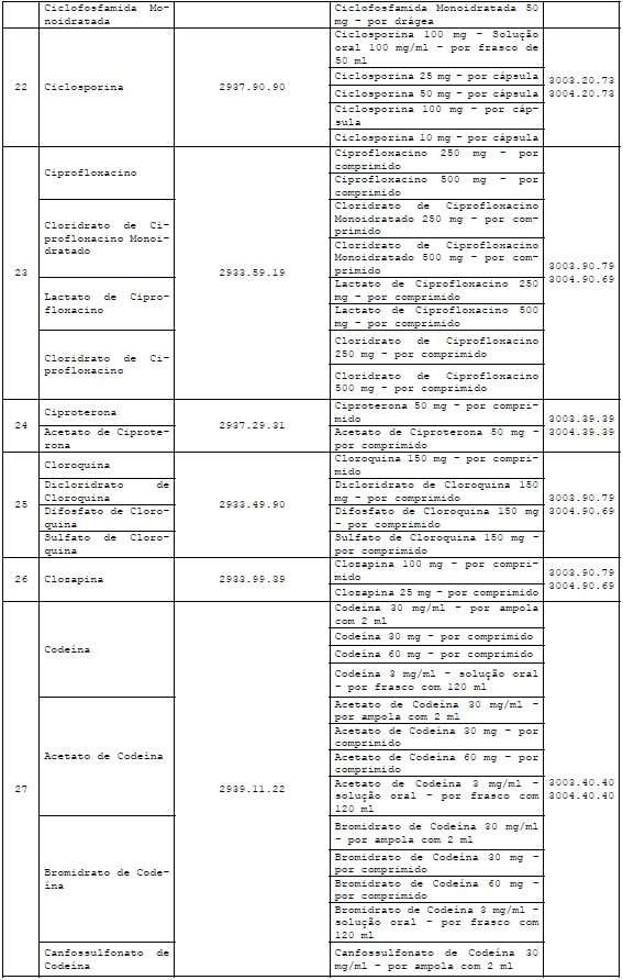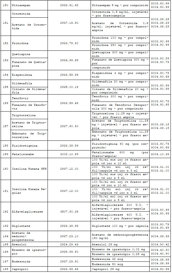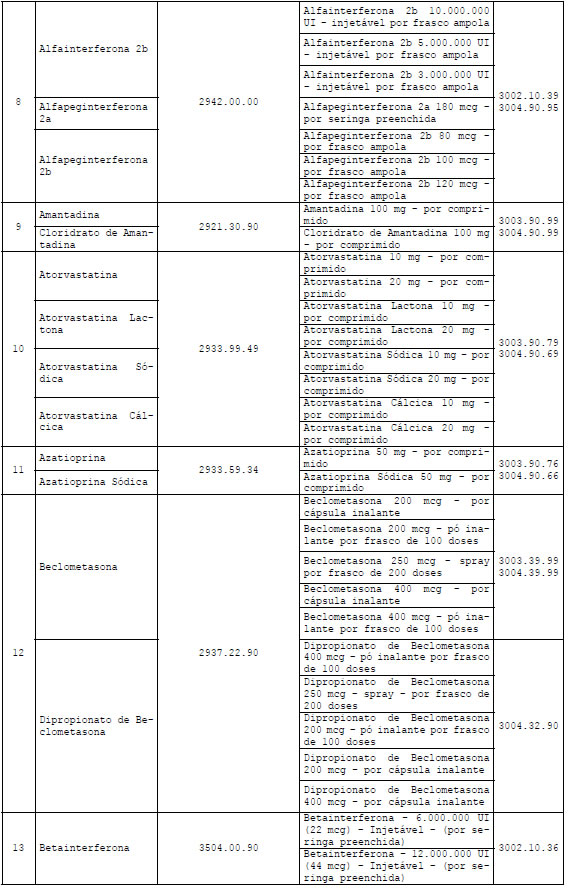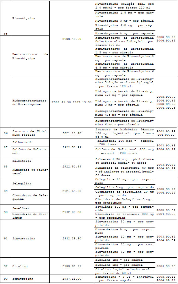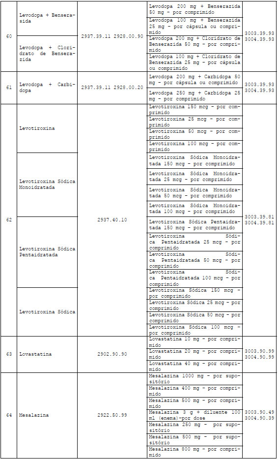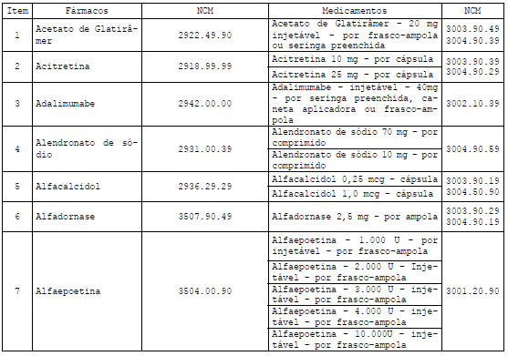 “§ 5º - Os fármacos e medicamentos a que se refere o “caput” deste artigo são os adiante indicados, observada a classificação segundo a Nomenclatura Comum do Mercosul - NCM: