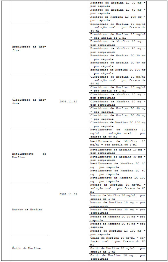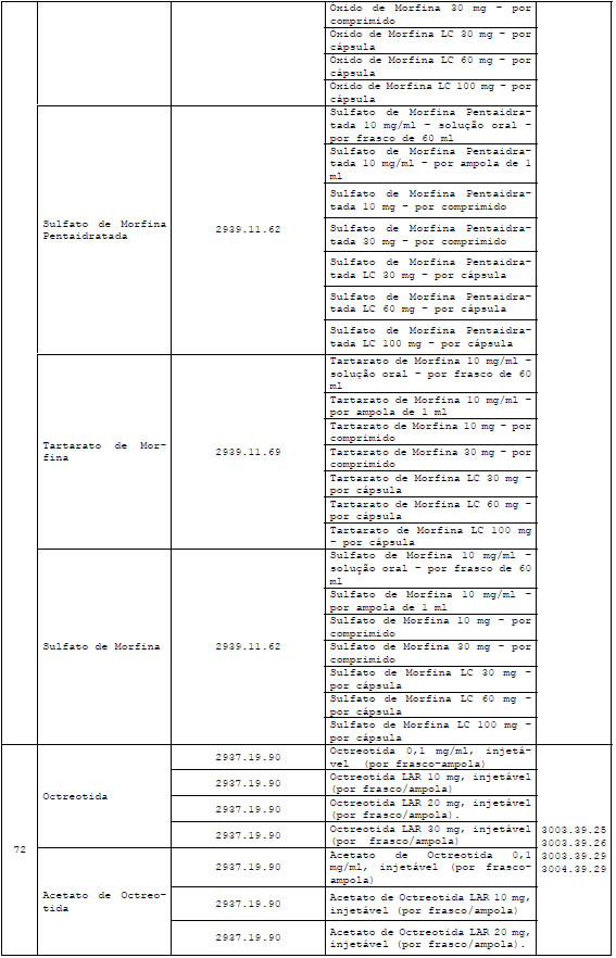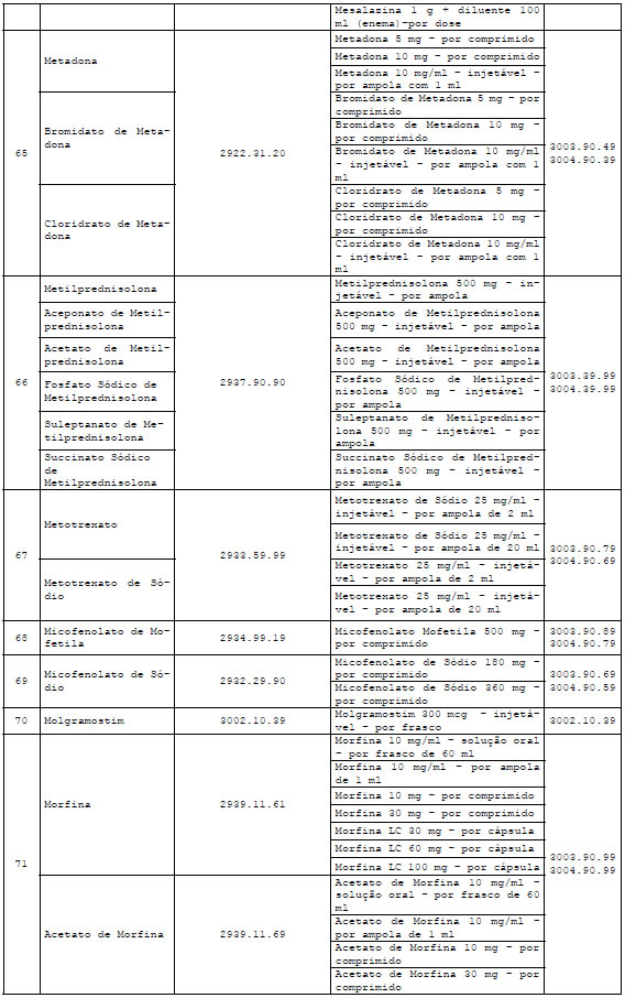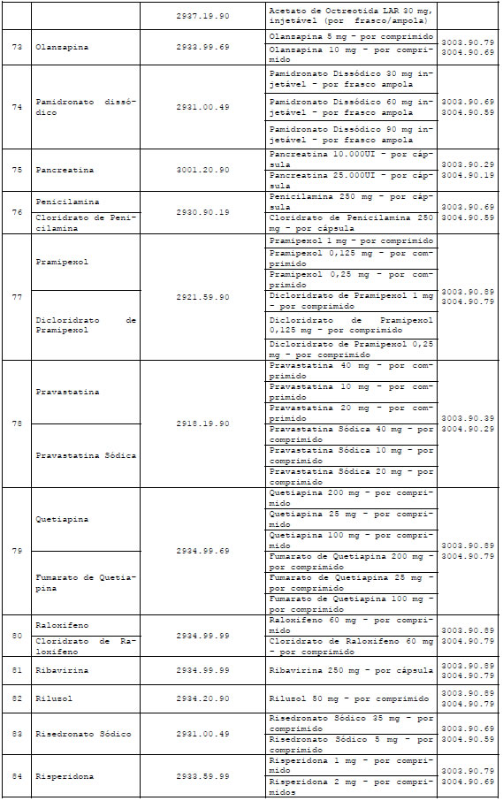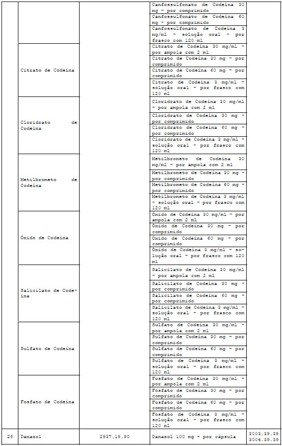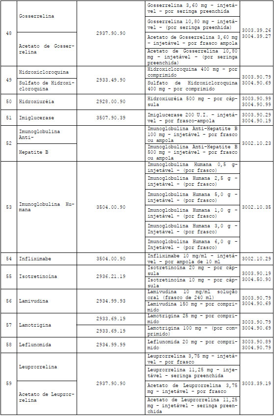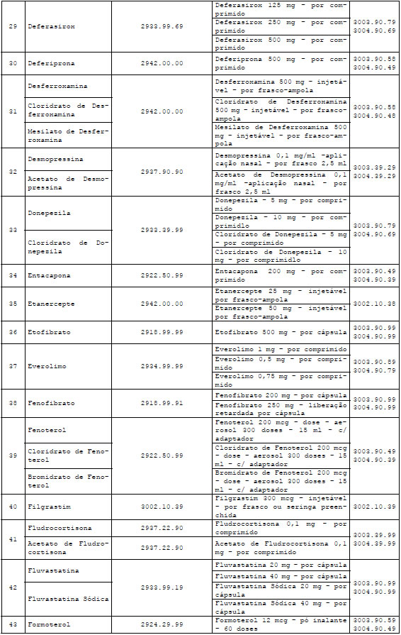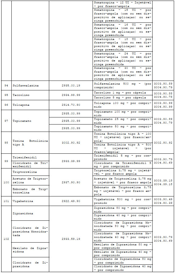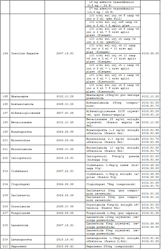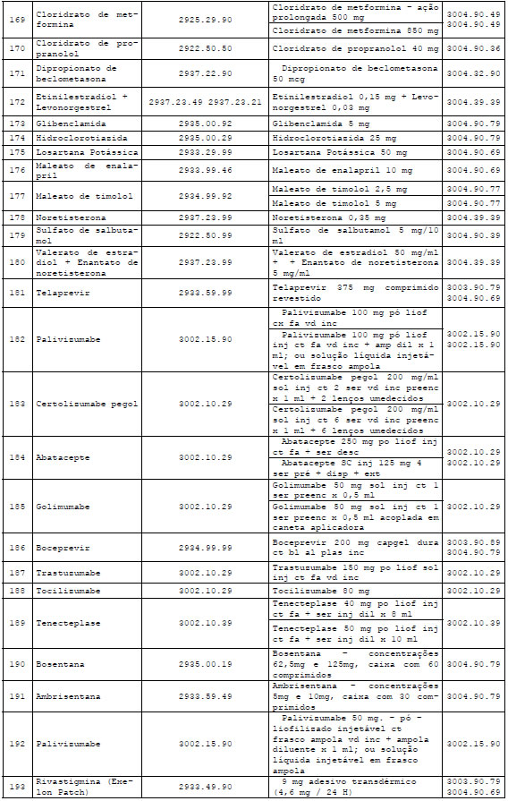 “§ 5º - Os fármacos e medicamentos a que se refere o “caput” deste artigo são os adiante indicados, observada a classificação segundo a Nomenclatura Comum do Mercosul - NCM: