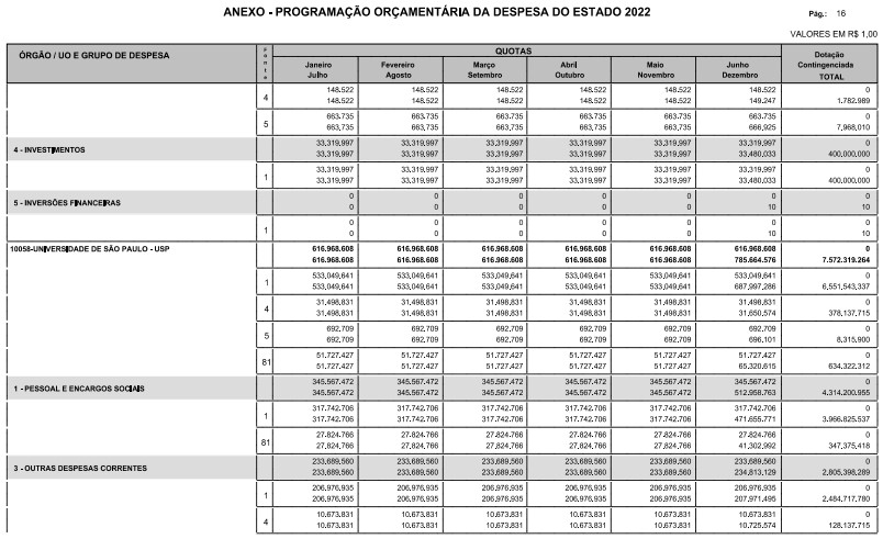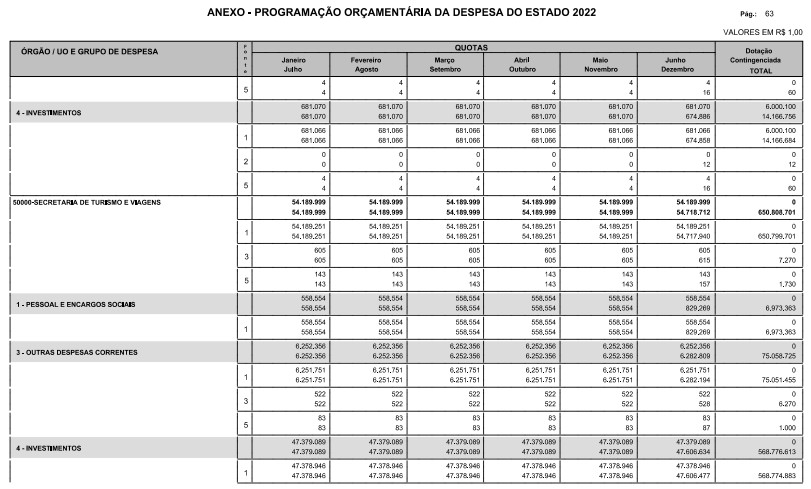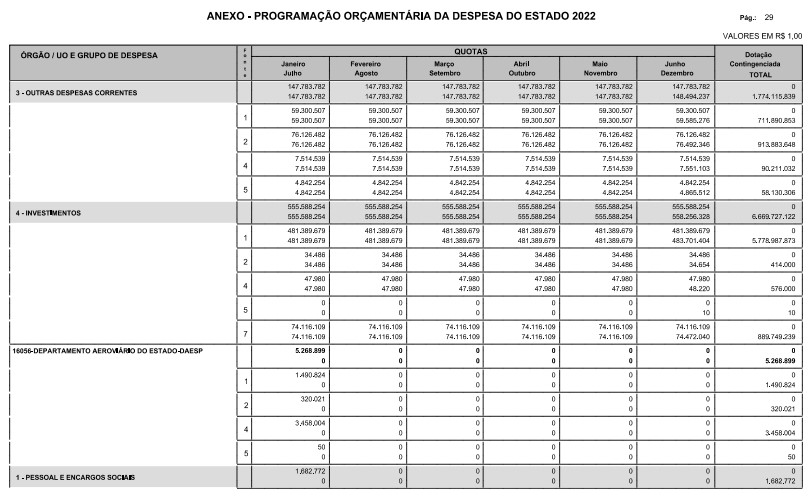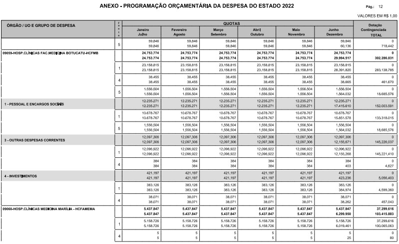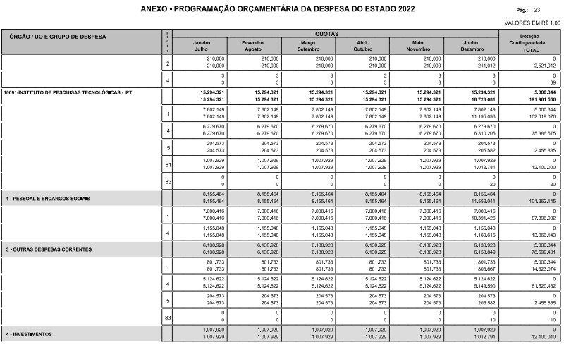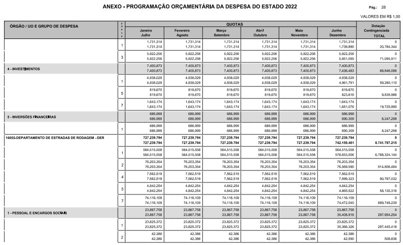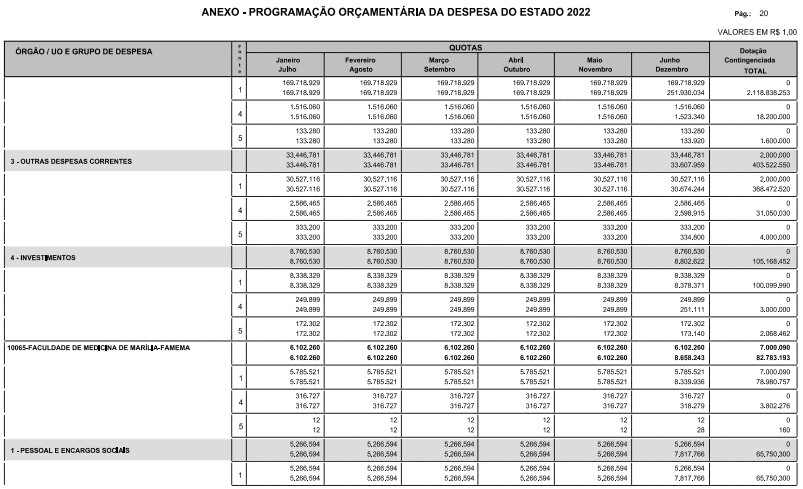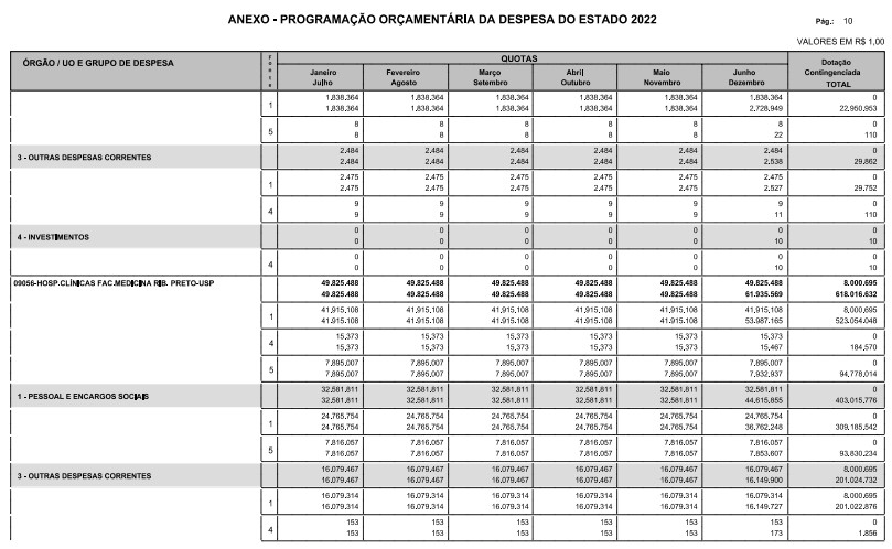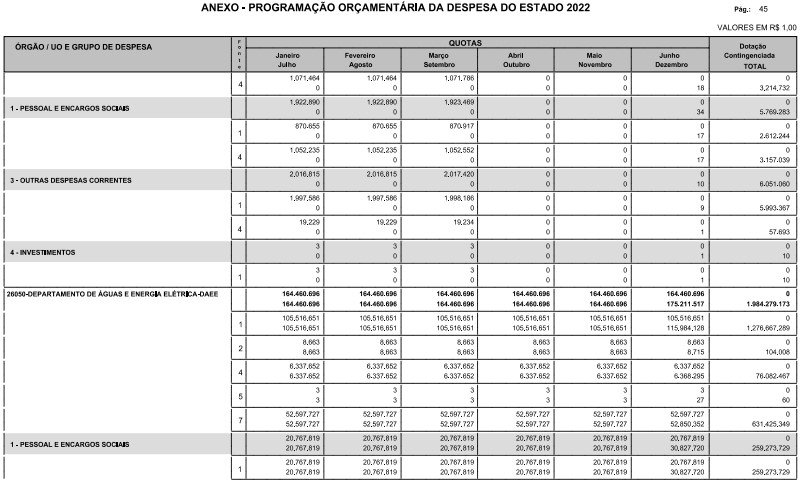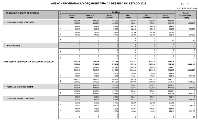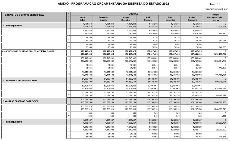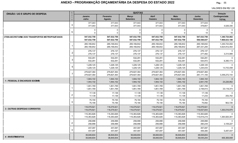§ 1º - A distribuição das dotações orçamentárias, por quotas, constantes do Anexo deste decreto, será automaticamente disponibilizada no SIA-FEM/SP com o seguinte detalhamento:
